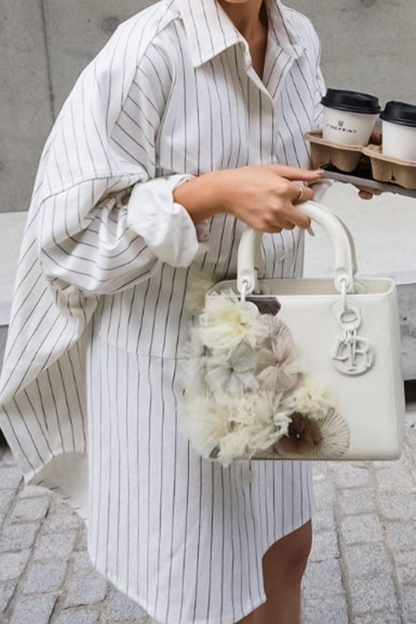 Αυτό το ριγέ πουκάμισο είναι σχεδιασμένο με φαρδιά εφαρμογή για ένα μοντέρνο και άνετο look.Έχει μοτίβο ρίγες που προσθέτουν στυλ και ενδιαφέρον στο σχέδιο. Διατίθεται σε onesize και ταιριάζει σε όλα τα μεγέθη!