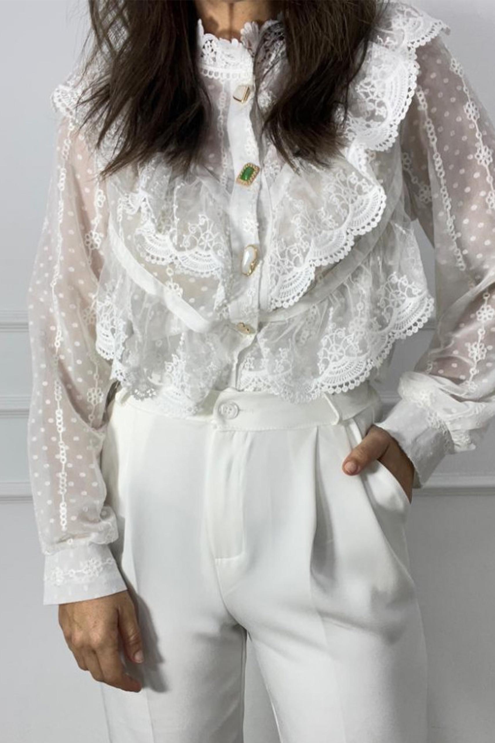 Romantic vintage peplum διάφανο mesh transparent πουκάμισο με βολάν και ρετρό μεγάλα κουμπιά.