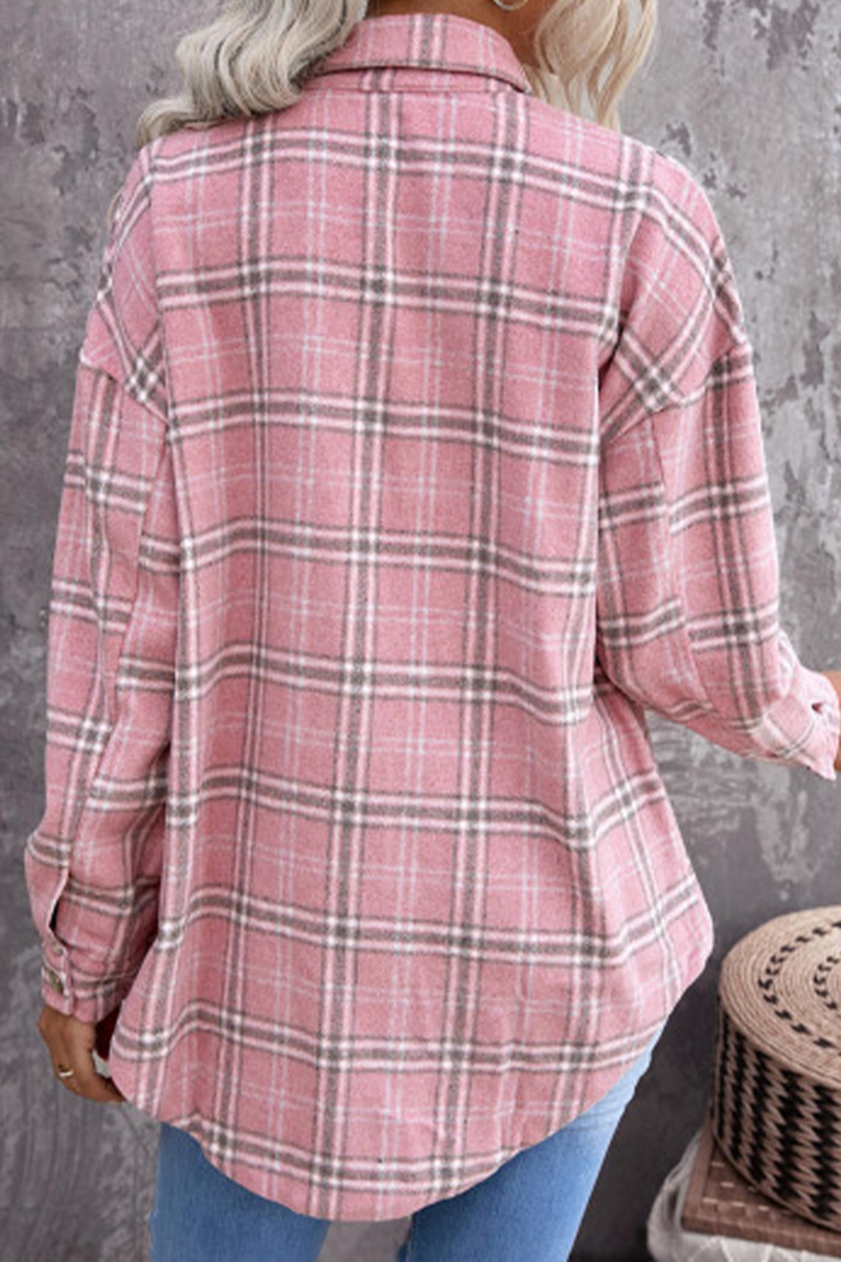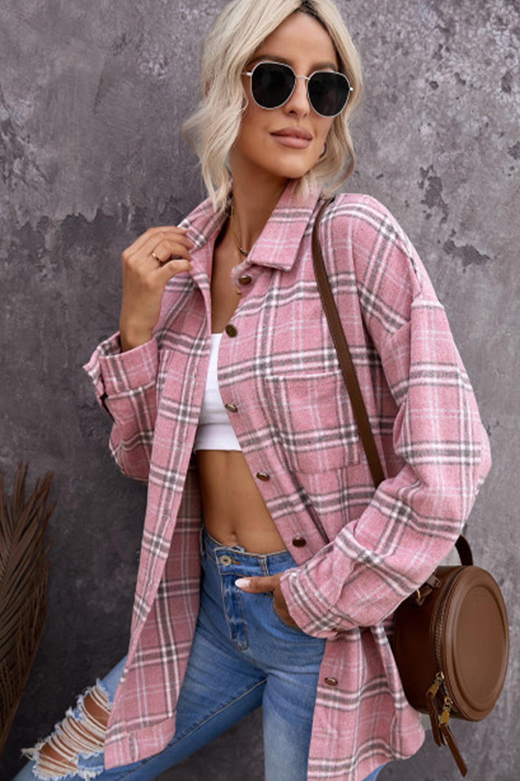 Lumberjack καρώ πουκάμισο πανωφόρι σε ροζ απόχρωση με γκρι λεπτομέρειες και χρυσά ματ κουμπιά.