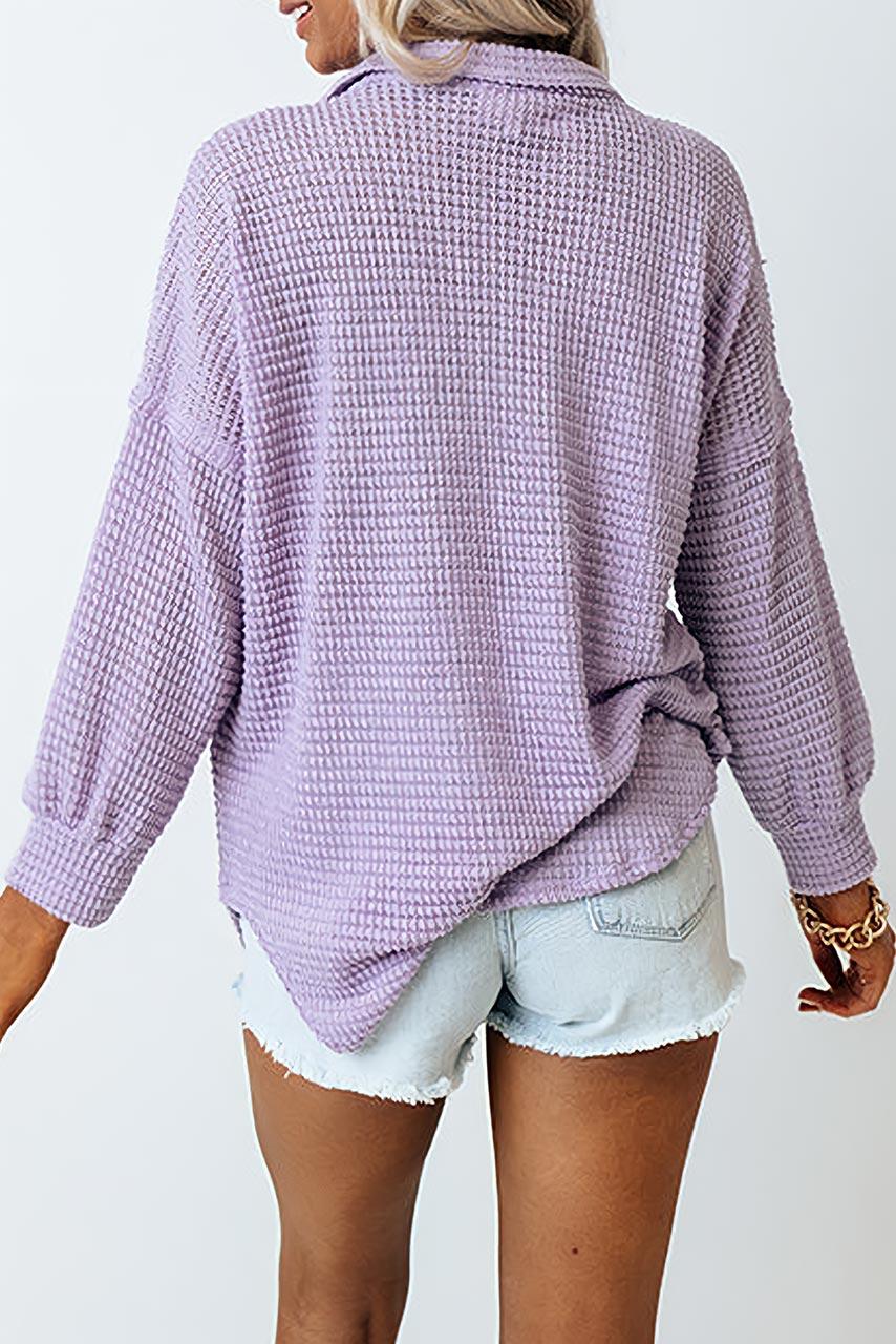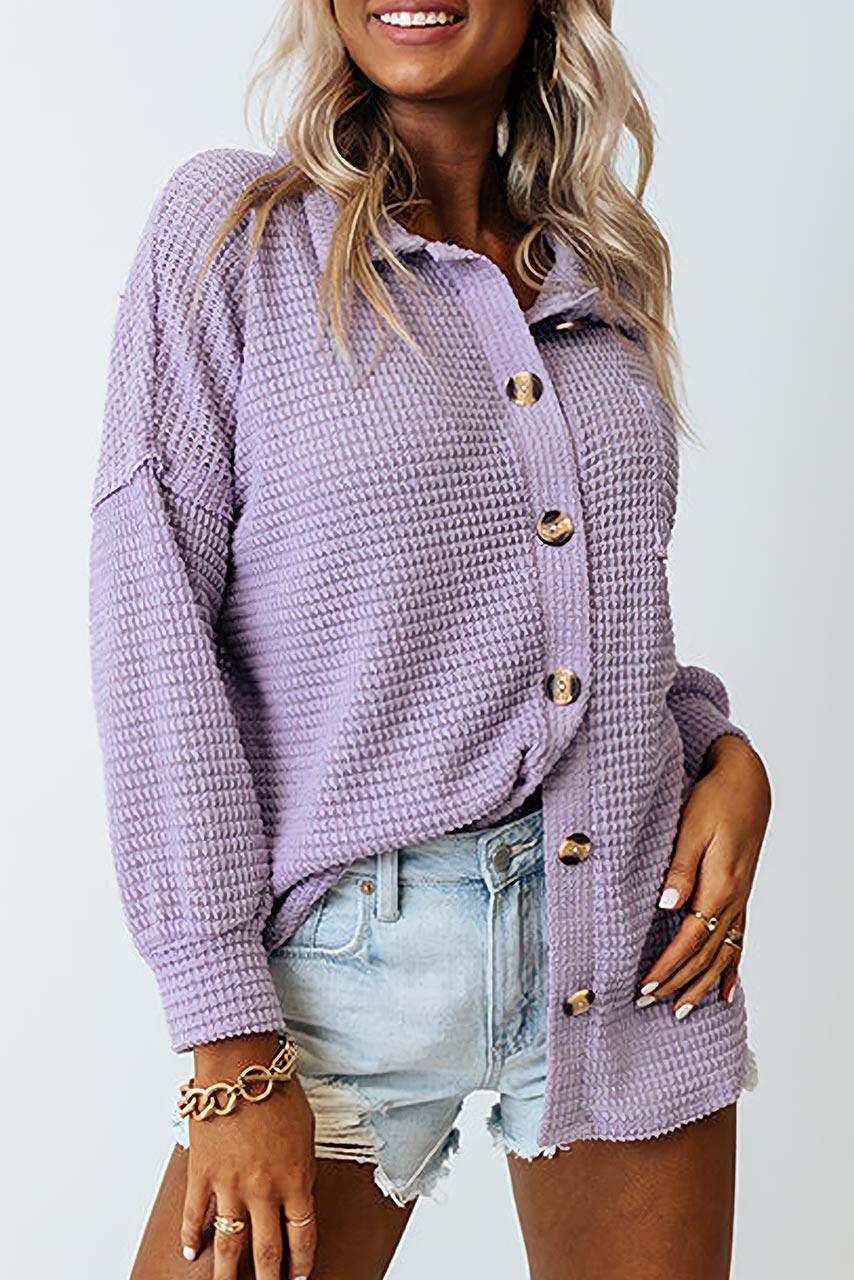 Vintage casual retro buttons πουκάμισο με μεγάλα ρετρό κουμπιά σε μωβ απόχρωση και γκοφρέ υφή.