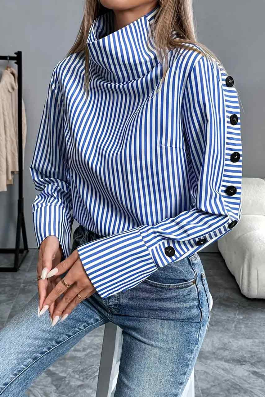 Ριγέ πουκάμισο με ψηλό γιακά και κουμπιά