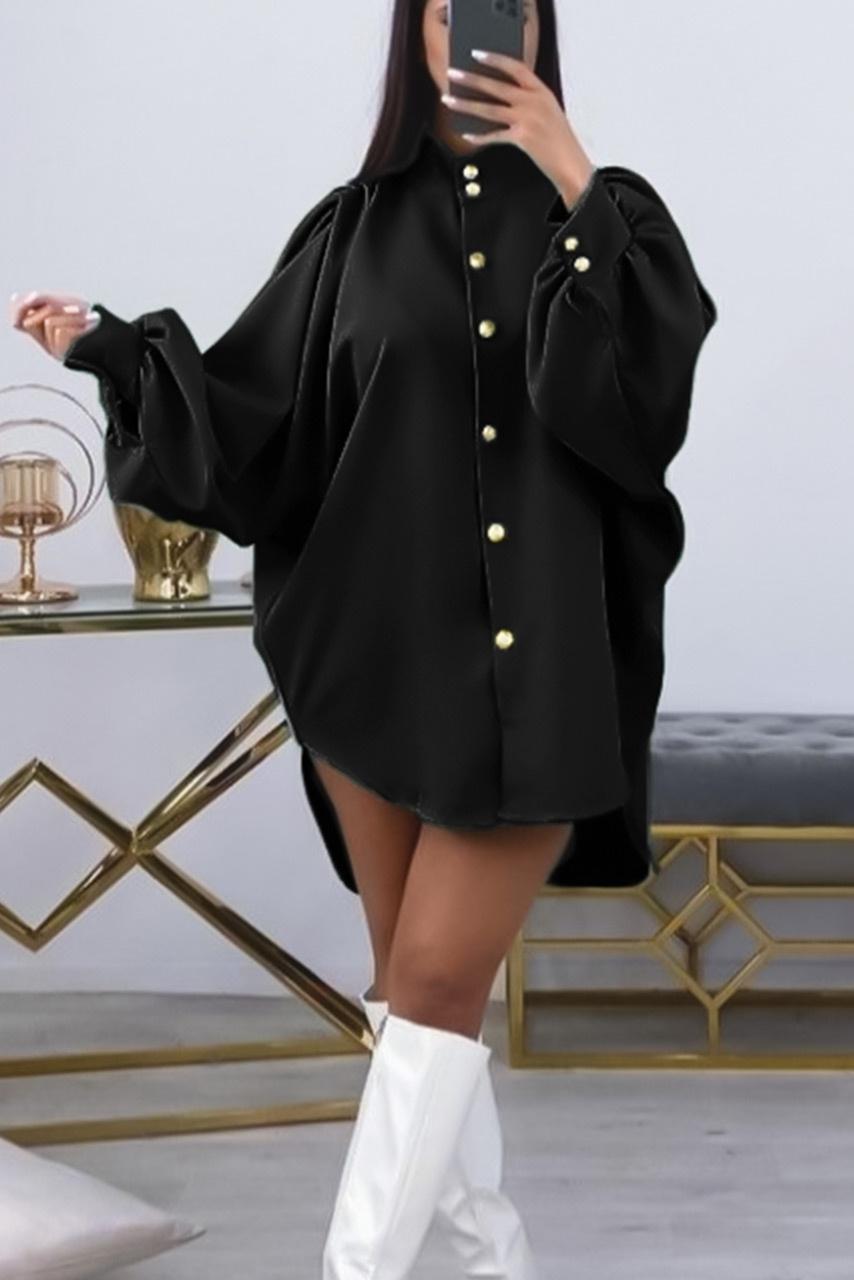 Modern glam satin shirt dress φόρεμα πουκάμισο ασύμμετρο σε πράσινη μεταλλική απόχρωση με ρετρό μανίκια balloon και κουμπιά κατά μήκος.