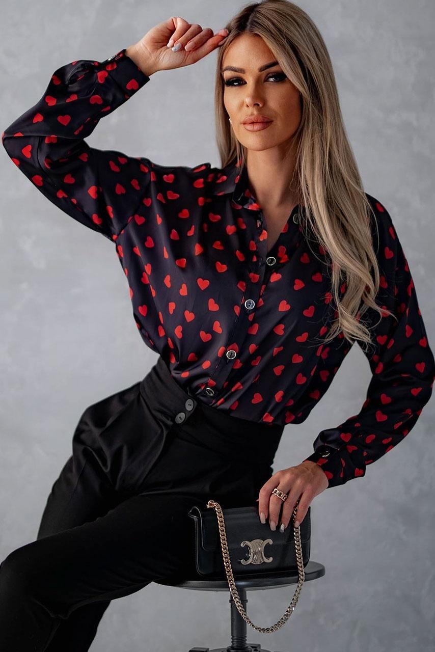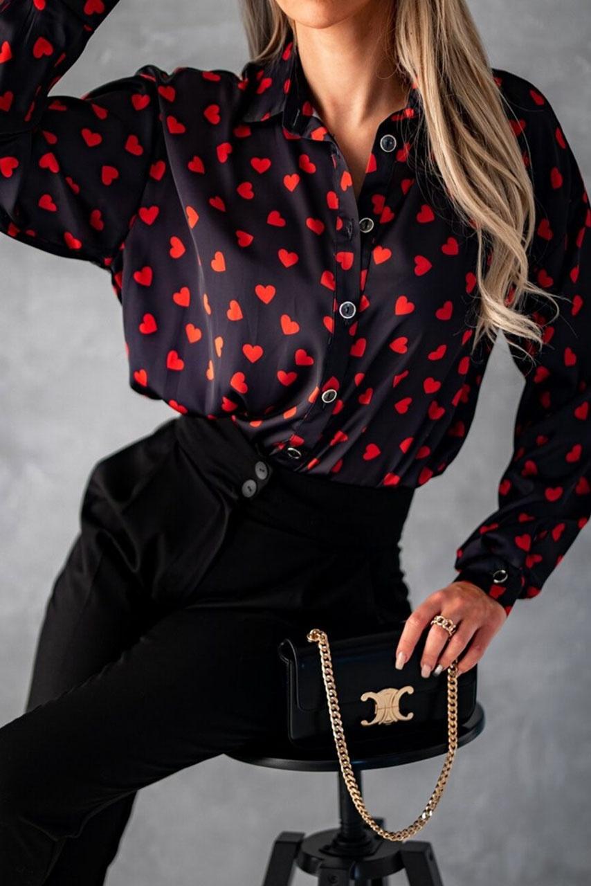 Πουκάμισο με κουμπάκια και κόκκινες καρδούλες για να το συνδυάσεις με το office παντελόνι σου.
