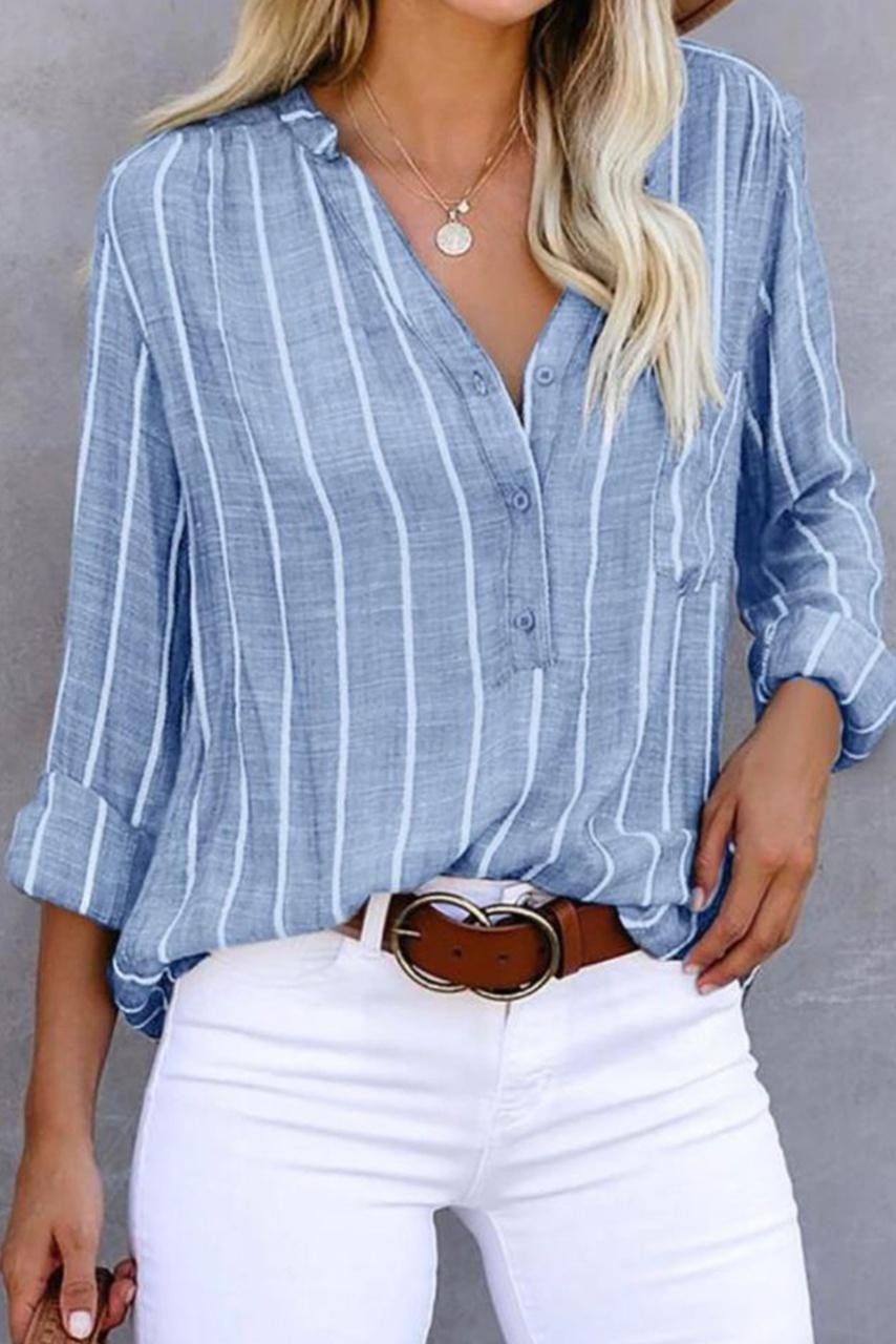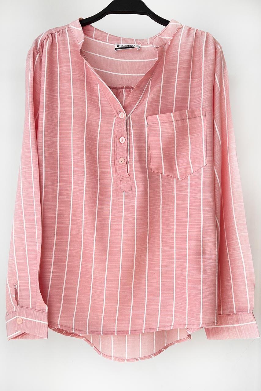 Λινό ριγέ πουκάμισο με μακρύ μανίκι σε ανοιχτό γαλάζιο και σε ροζ χρώμα με λευκή ρίγα.