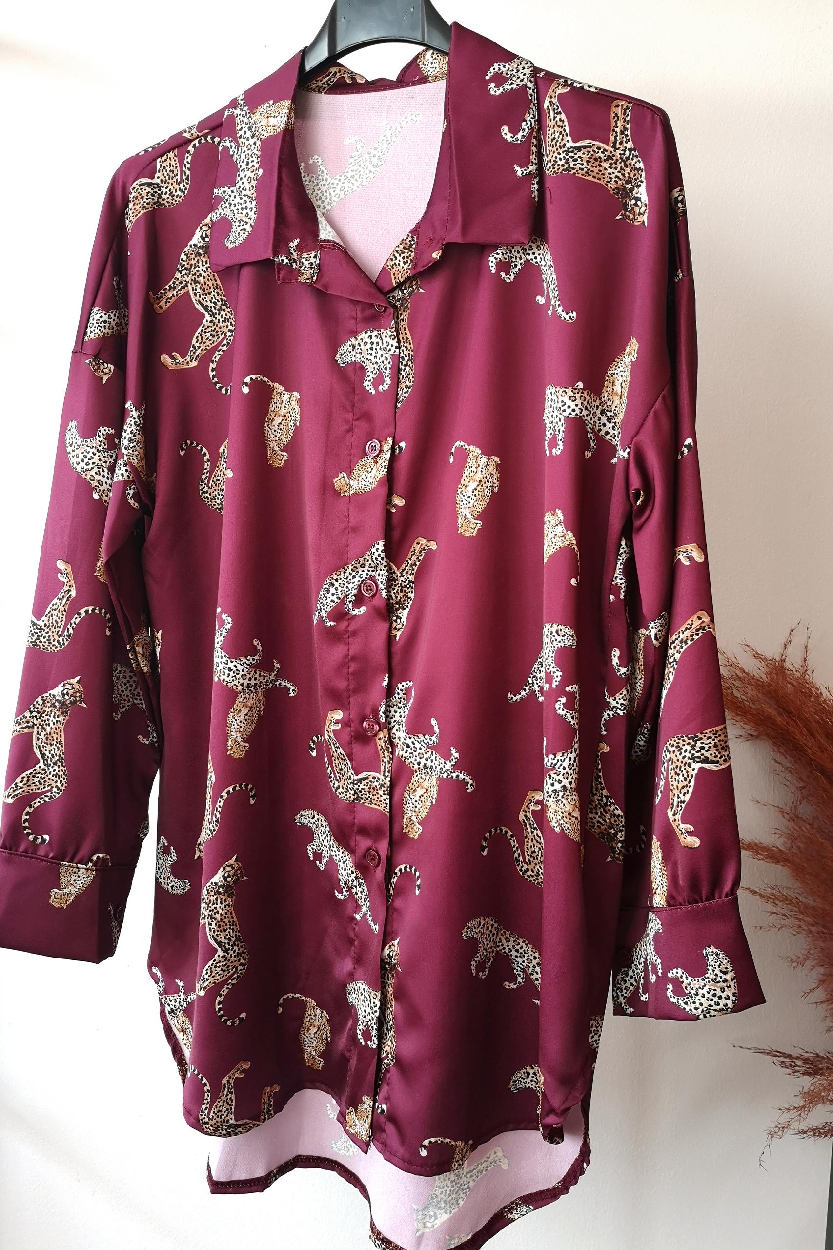 Tiger print satin πουκάμισο σε έντονες αποχρώσεις.