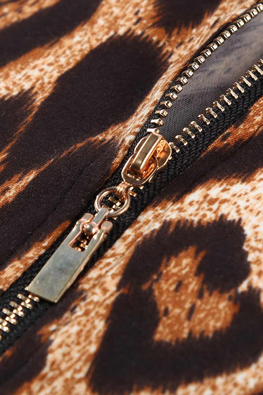 Κοντομάνικο κορμάκι λέοπαρ με φερμουάρ