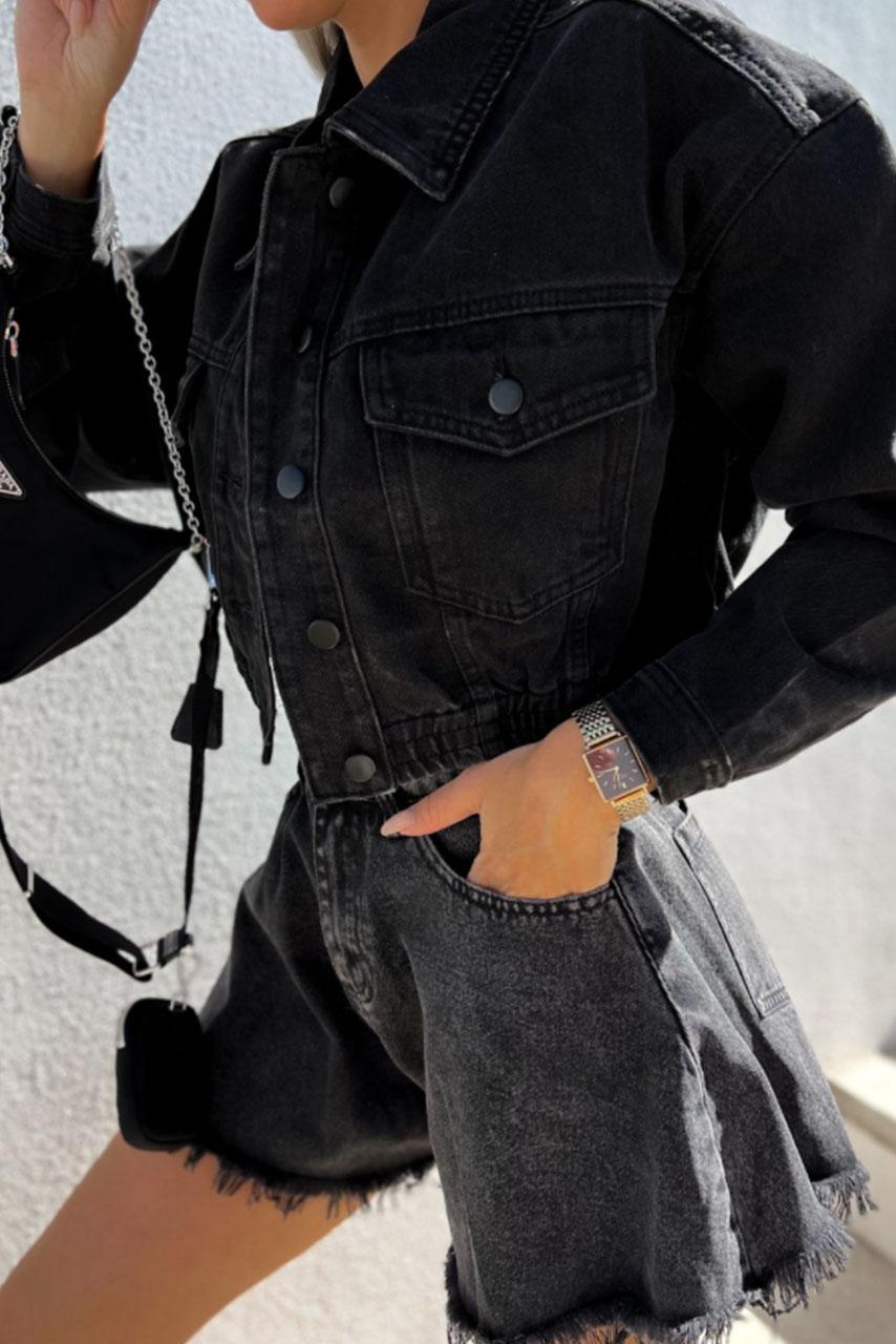 Casual pop denim τζιν flare σορτς σε Α γραμμή με πτυχές.