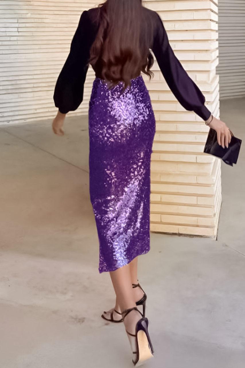 Glam partywear bandeau sequin φούστα σε μωβ μεταλλική απόχρωση με ασύμμετρο τελείωμα και λάστιχο στη μέση.