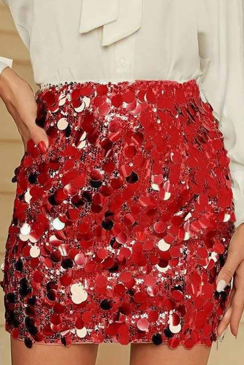 Φούστα κόκκινη μίνι με μεγάλη παγιέτα