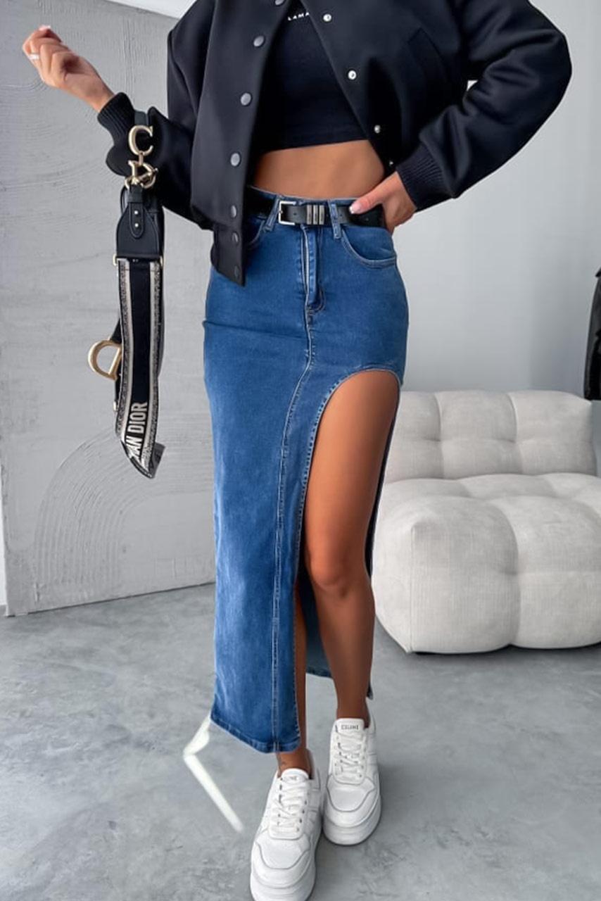 Maxi τζιν φούστα με σκίσιμο σε σκούρο μπλε