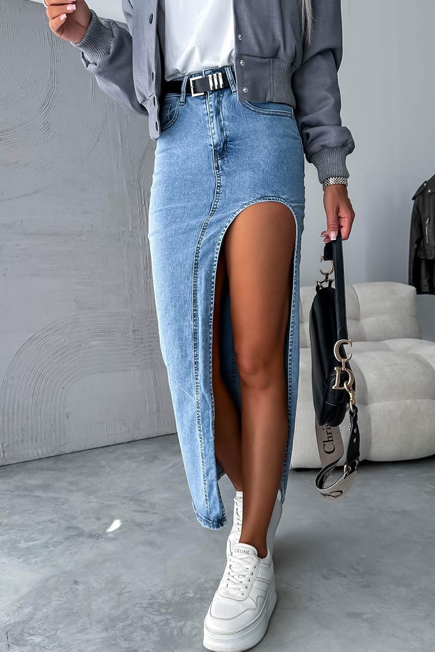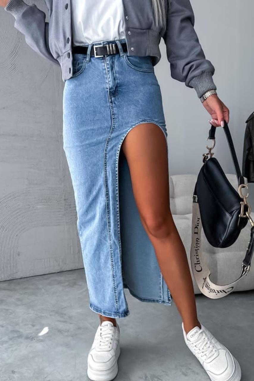 Maxi τζιν φούστα με σκίσιμο σε μπλε ανοιχτό