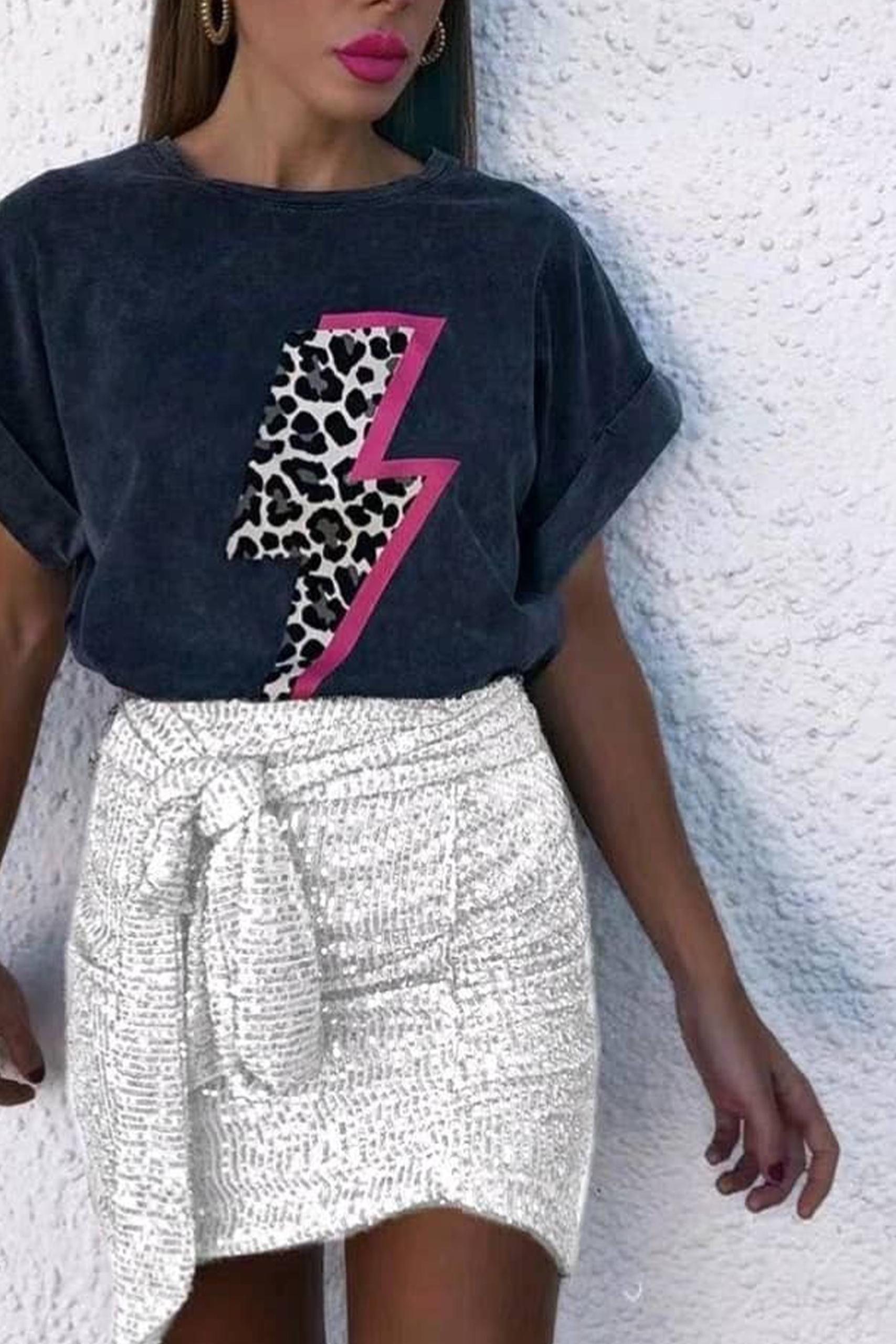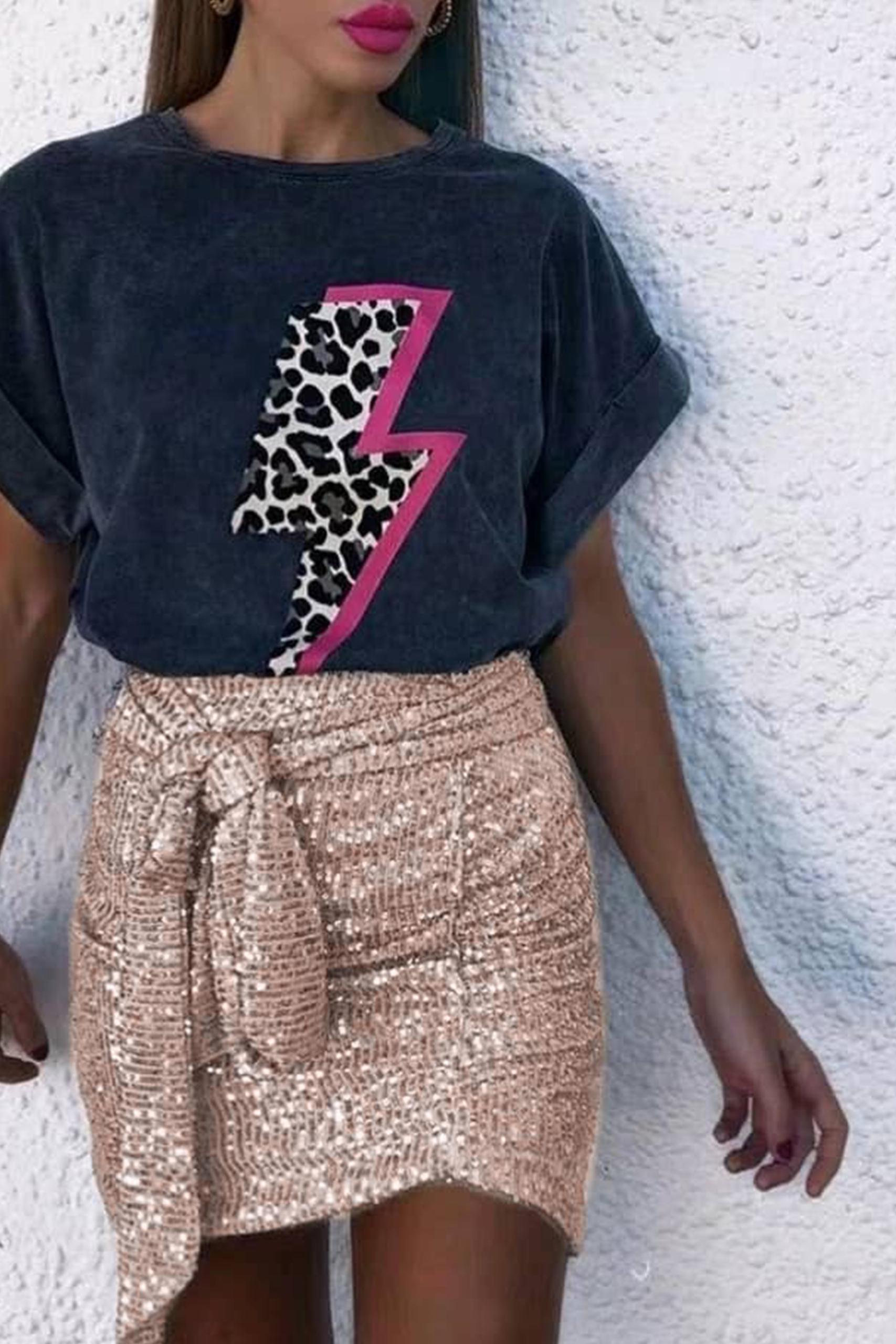 Modern glam chic side tie φούστα με παγιέτα σε τρεις μεταλλικές αποχρώσεις.