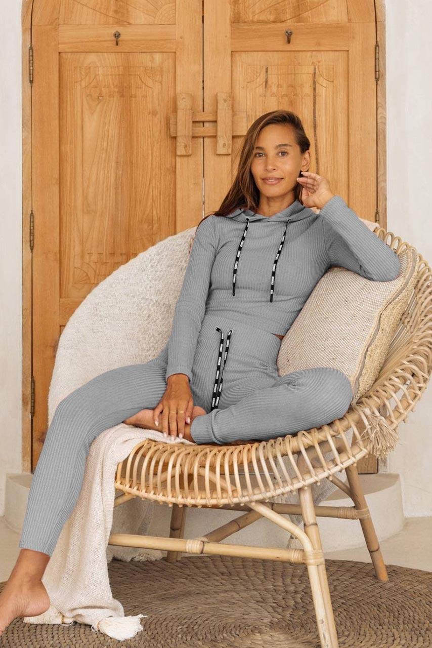 Casual chic all day σετ φόρμας σε 2 αποχρώσεις, γκρι και μαύρο, με μακρυμάνικο τοπ και παντελόνι με λάστιχο στη μέση.