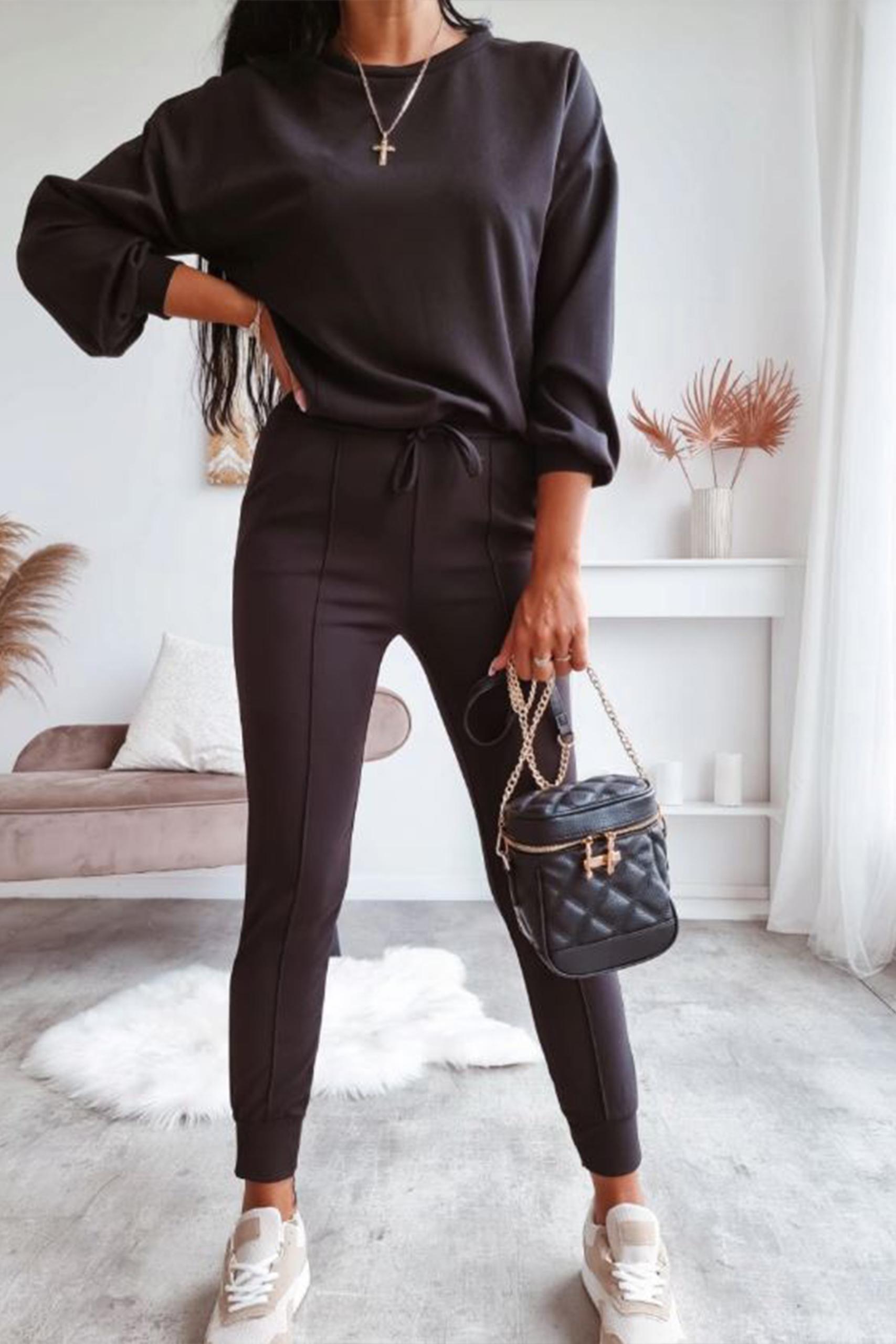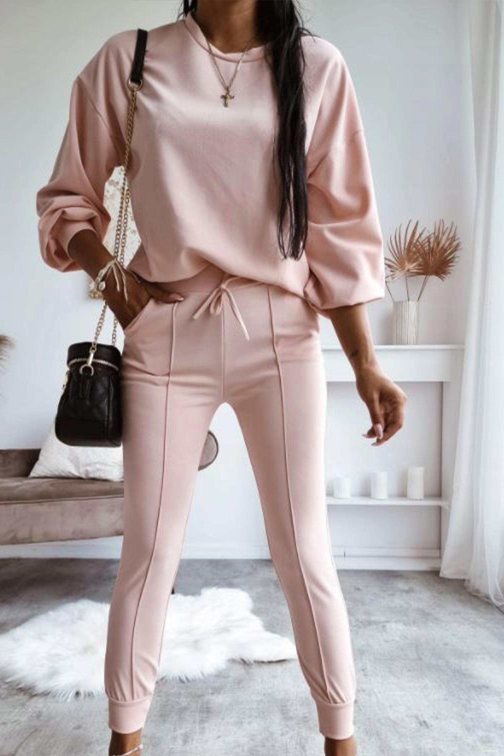 • Σετ μπλούζα Ο neck – Στενό παντελόνι με λάστιχο στη μέση και στο τελείωμα | Κορδόνι αυξομείωσης
