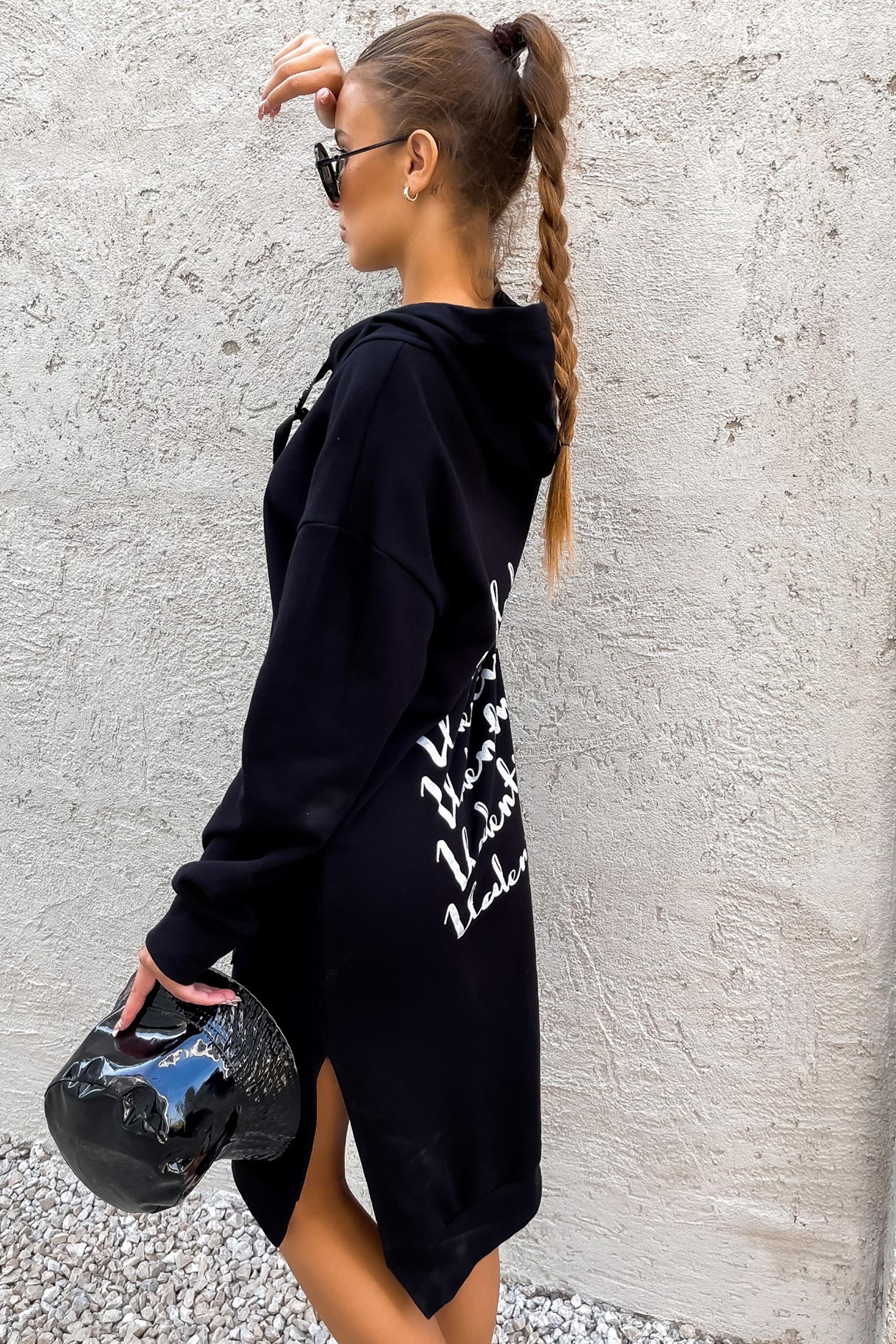 Μακρύ hoodie φούτερ σε δύο χρώματα με κουκούλα, μικρά ανοίγματα στο πλάι και στάμπα στην πλάτη.
