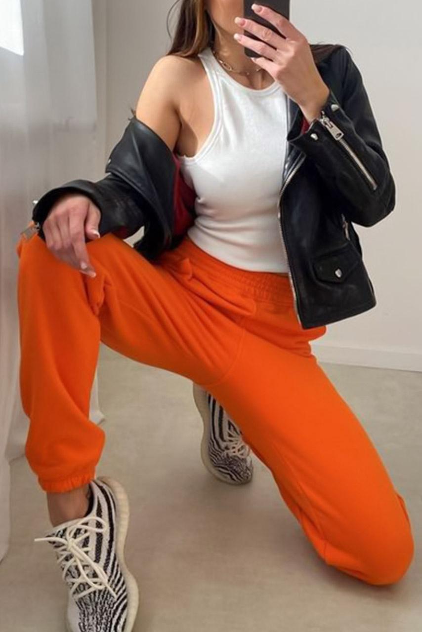 Casual workout παντελόνι σε πορτοκαλί χρώμα με λάστιχο στη μέση και στο τελείωμα.