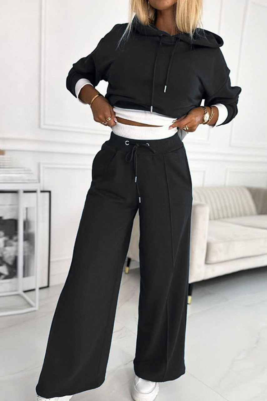 • Σετ φόρμα crop top φούτερ με κουκούλα και λευκά τελειώματα