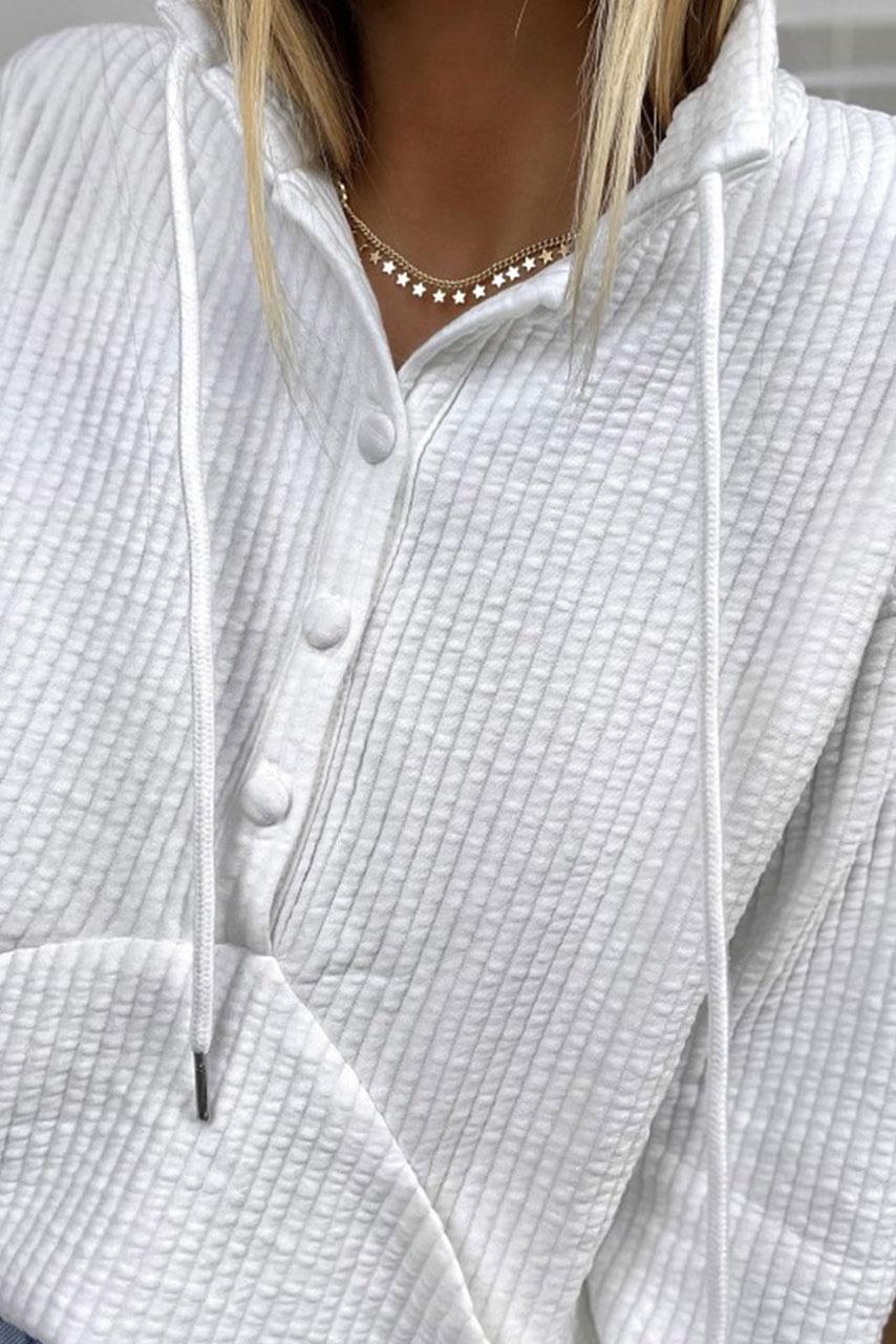 Casual basics total white hoodie σε λευκό χρώμα με κουκούλα και κουμπιά.
