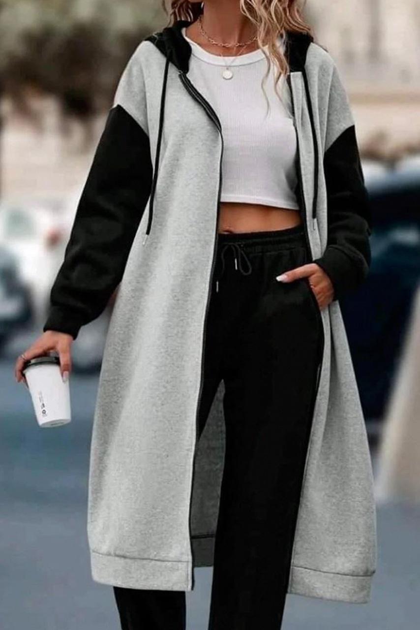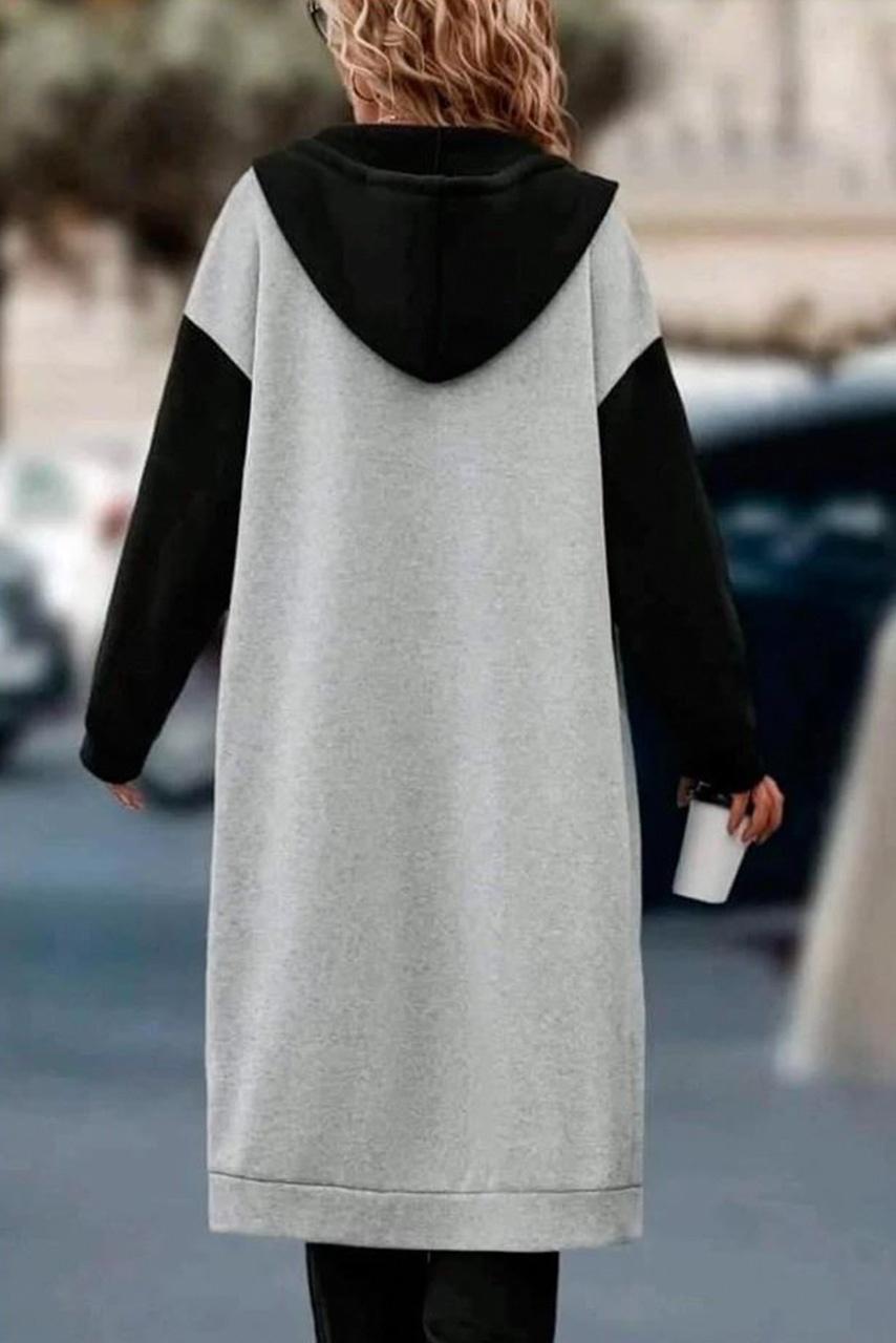 Υπέροχη, μοναδική, statement. Μακριά γκρί φούτερ ζακέτα με φερμουάρ, με διαφορετικό χρώμα μανίκια και κουκούλα. Θα ολοκληρώσει απόλυτα το στύλ σου συνδυάζοντας την τέλεια με τζίν, δερμάτινο παντελόνι, κολάν ακόμη και με μίνι φούτερ ή υφασμάτινη φούστα και ψηλές μπότες.