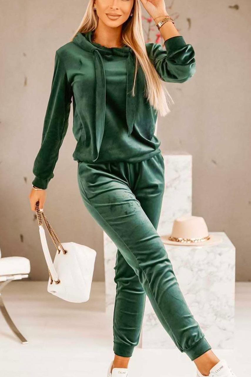 Βελουτέ σέτ παντελόνι με φούτερ σε πράσινο