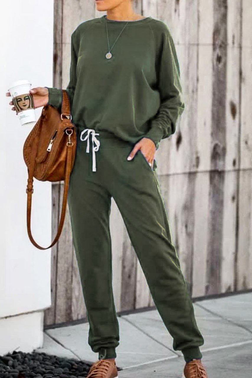 Casual μακρυμάνικο σετ με jumper και παντελόνι σε χακί χρώμα για όλες τις ώρες της ημέρας.