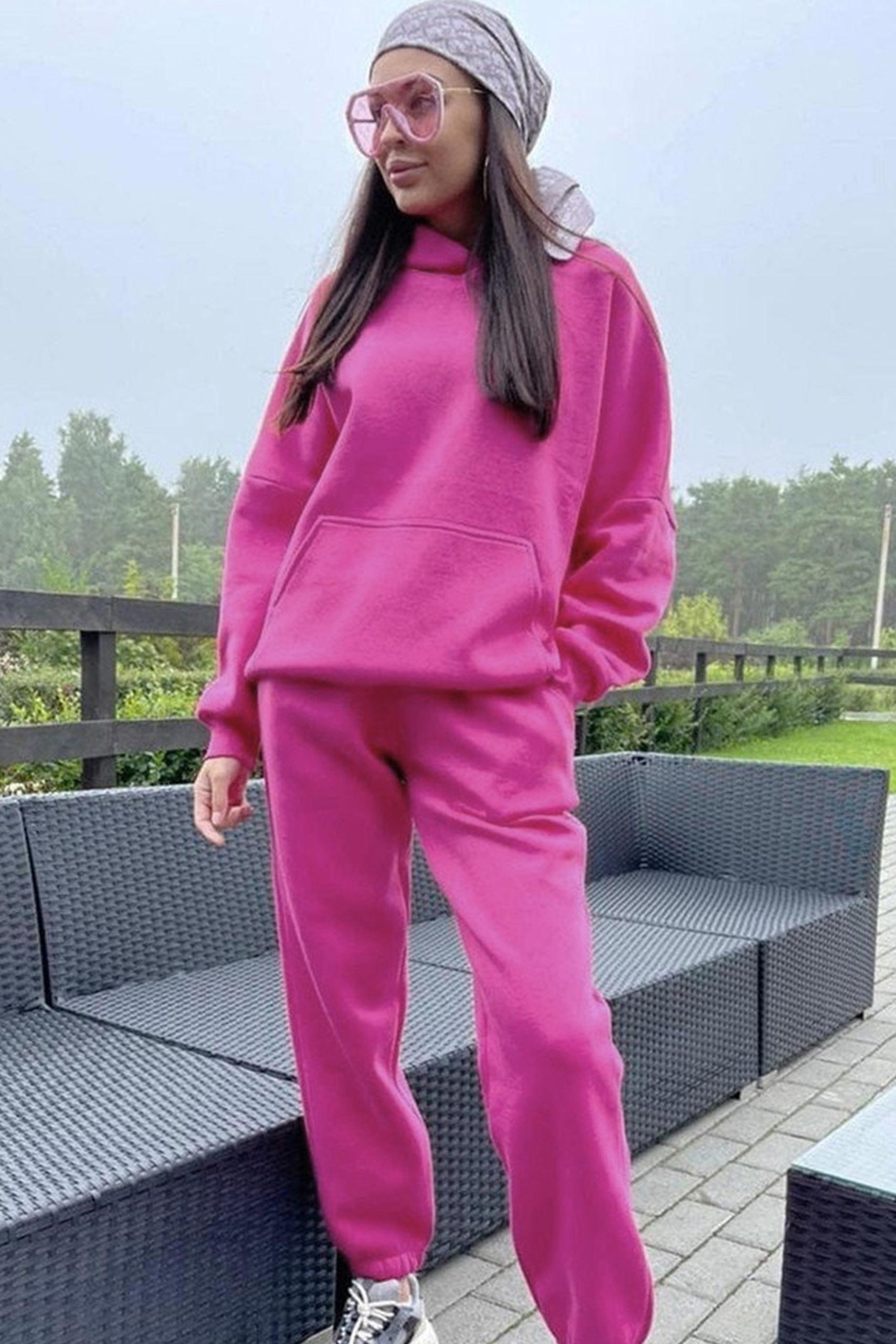 Workout σετ φόρμας με hoodie on top και παντελόνι φόρμας σε δύο αποχρώσεις.