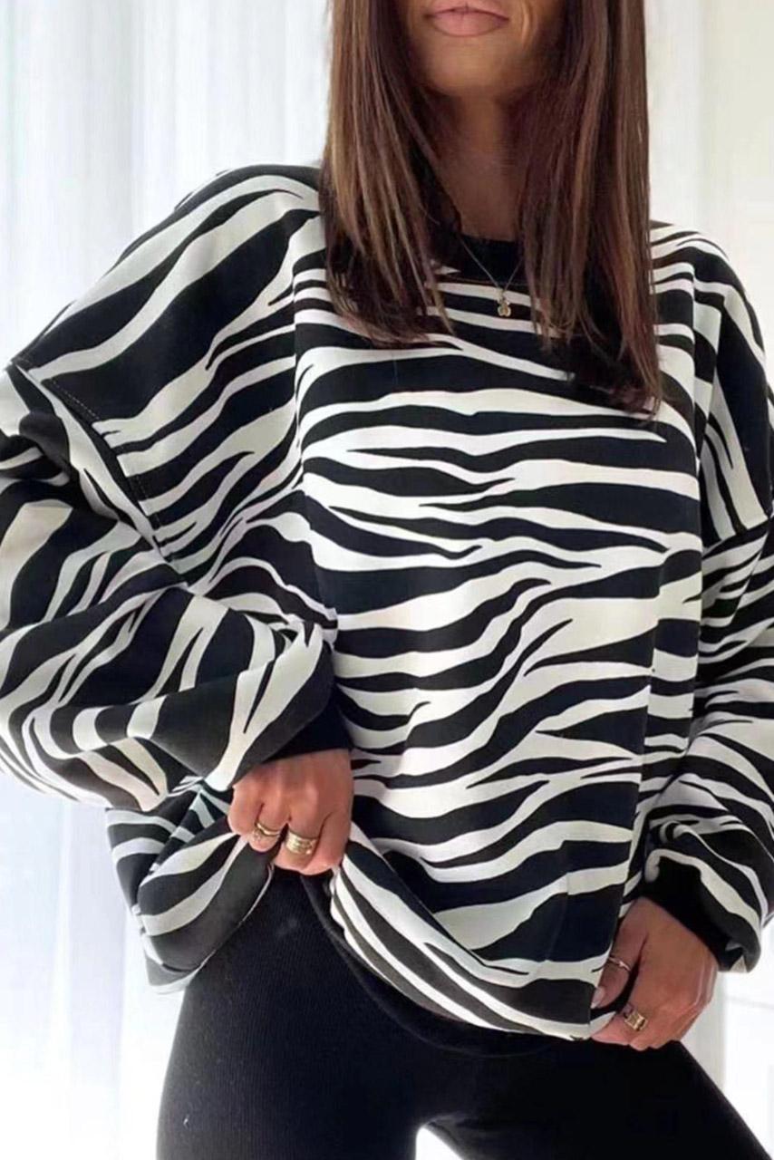 Glam pop zebra μακρυμάνικο φούτερ με στρογγυλή λαιμόκοψη σε ασπρόμαυρη απόχρωση.