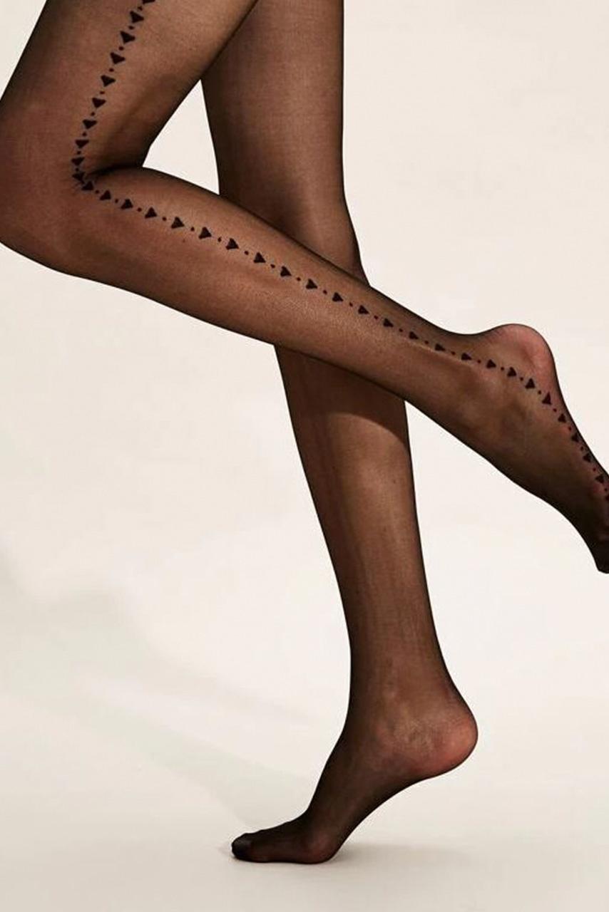 Μαύρο διάφανο καλσόν με μαύρο pattern από καρδιές, που σχηματίζουν ένα vintage seem ρίγας στο πλάι.