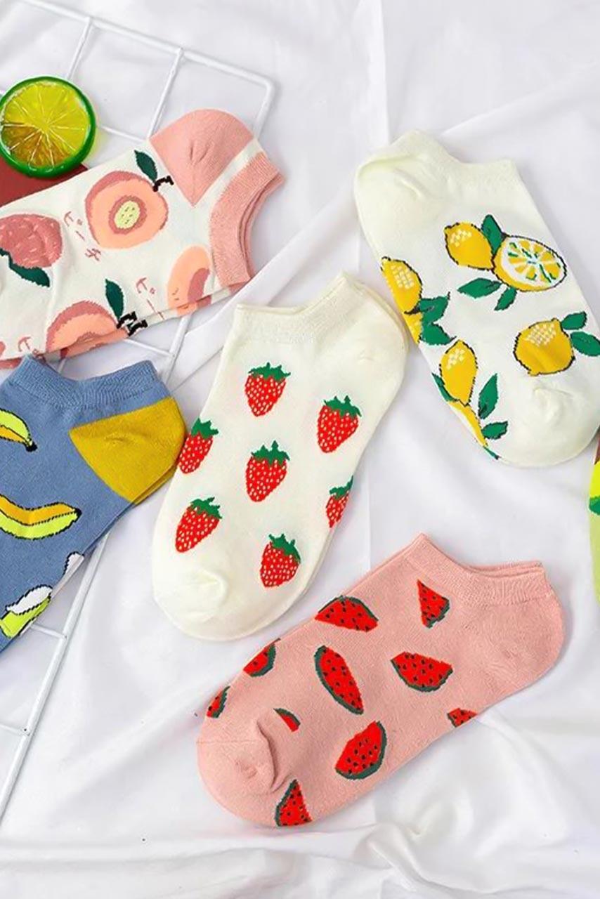 Χαμηλές κάλτσες με print φρούτων για funky εμφανίσεις. Προσφέρουν άνεση, στυλ και ζεστασιά. Είναι One Size και καλύπτουν από 35 νούμερο μέχρι 39.