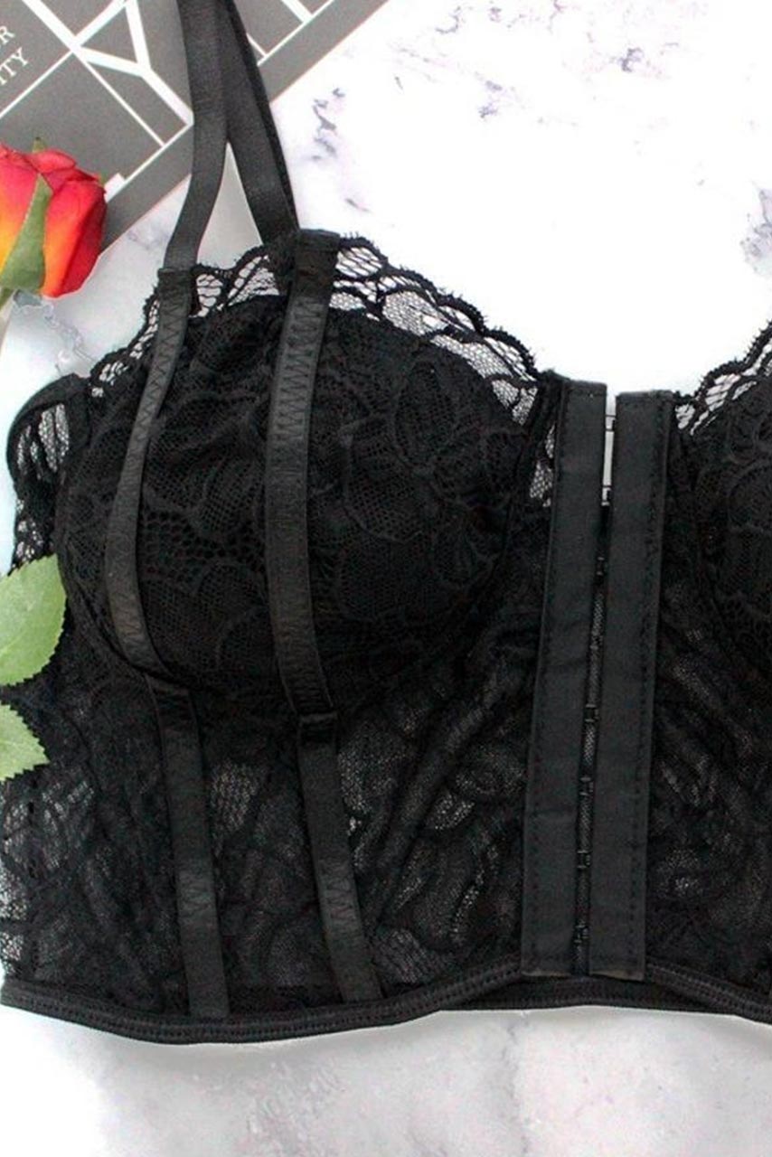 Bra top δαντελένιος κορσές μαύρος