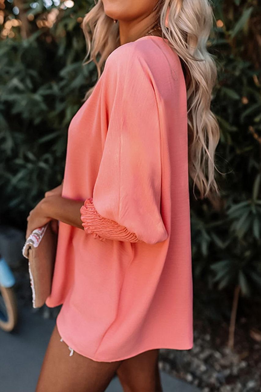 Over size τοπ με μανίκι μεσαιωνικού τύπου σε smocked ροζ απόχρωση.
