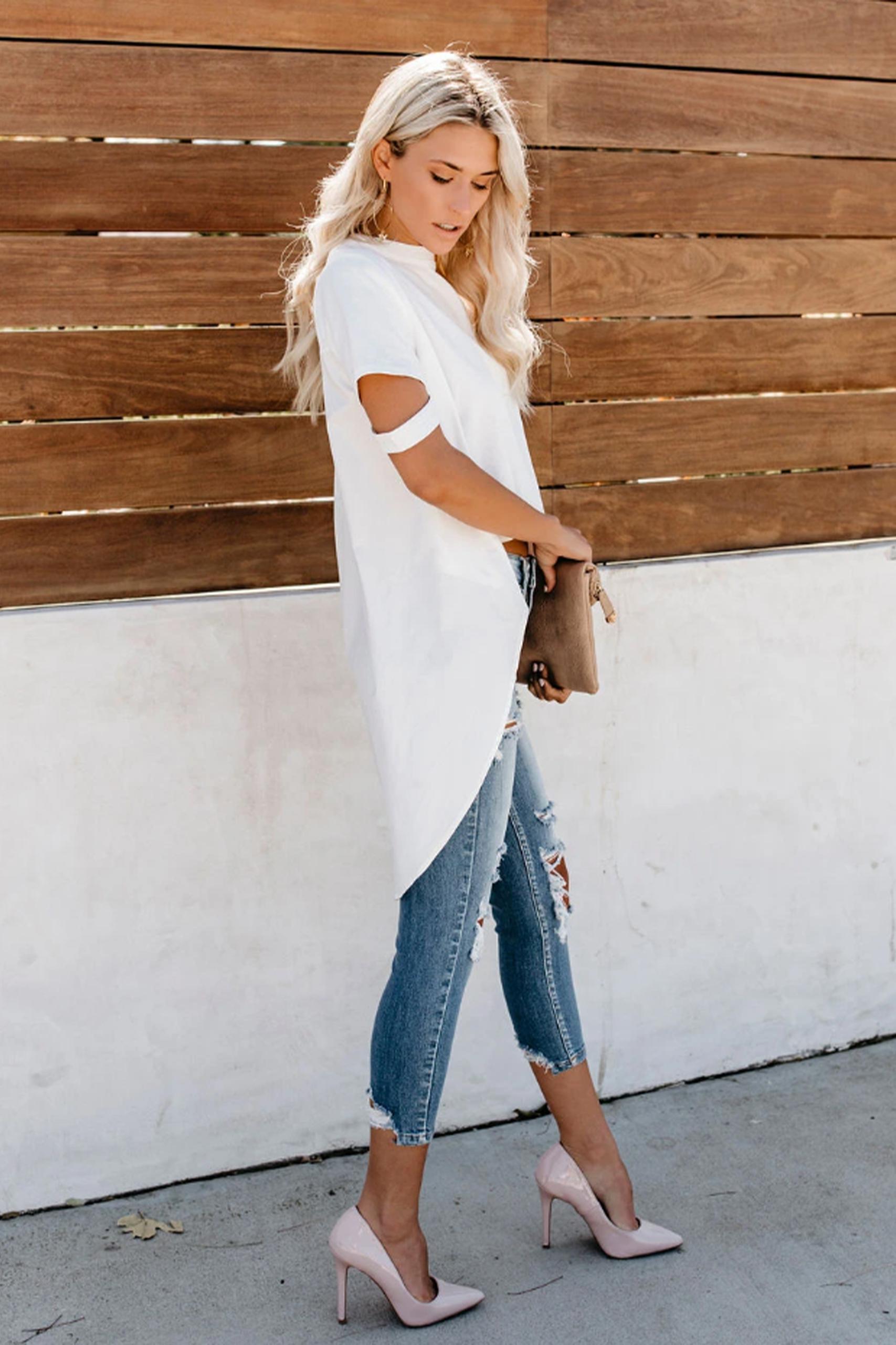 Ασύμμετρη μπλούζα με cut outs λευκή