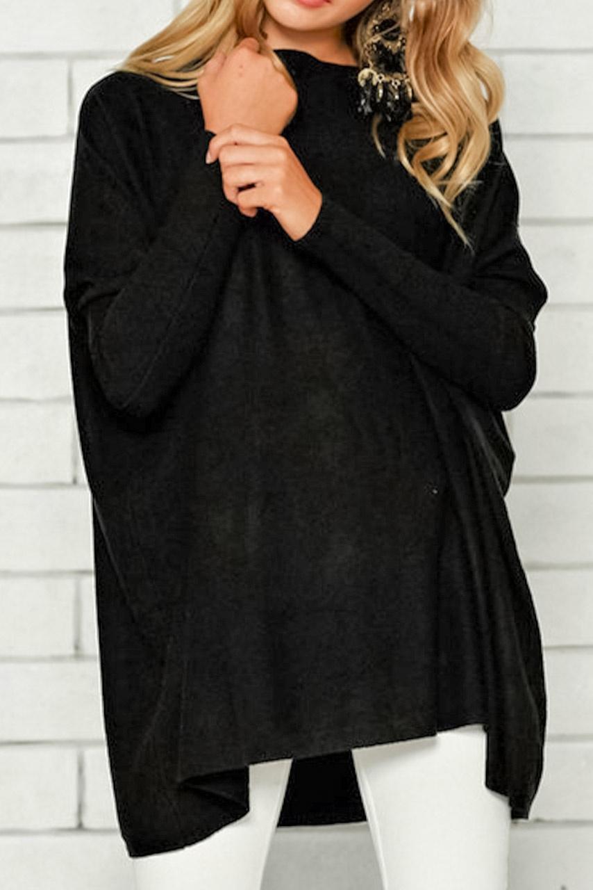 Casual basics ασύμμετρη μπλούζα σε μαύρο χρώμα με ελαφρό balloon στα μανίκια που στενεύει στο τελείωμα.