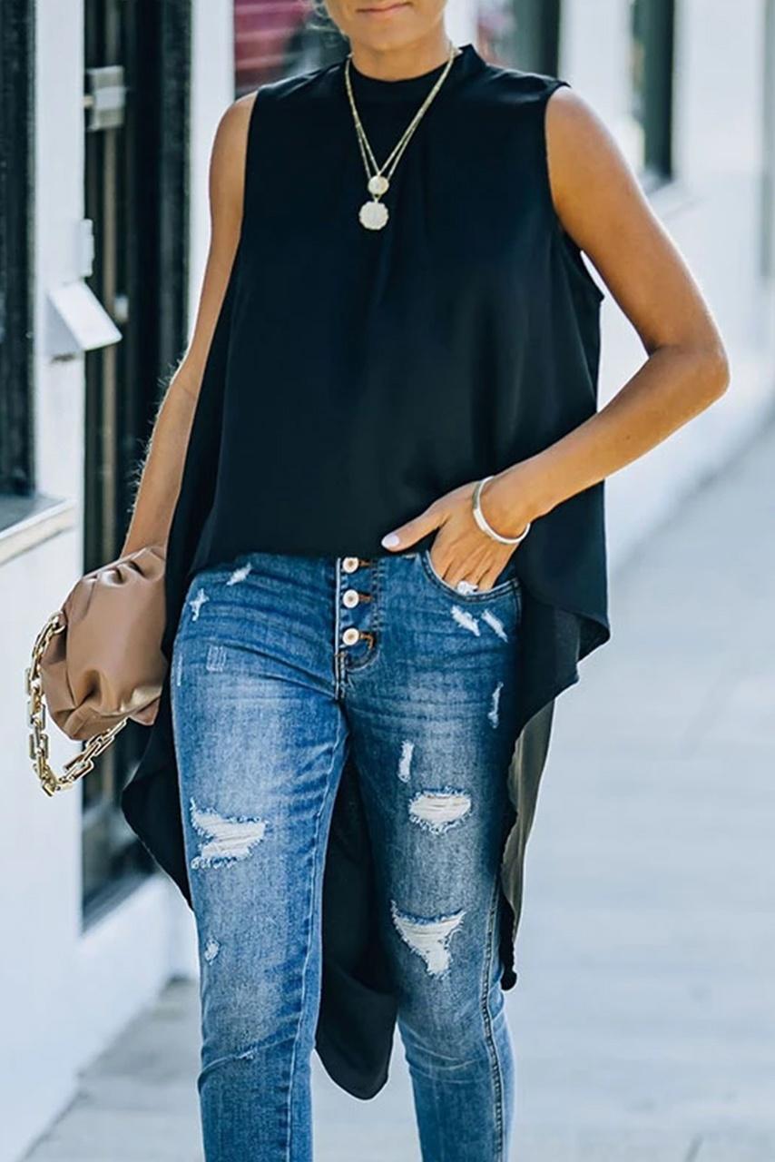 • Μπλούζα αμάνικη | Κουμπιά faux πέρλες πίσω στο λαιμό