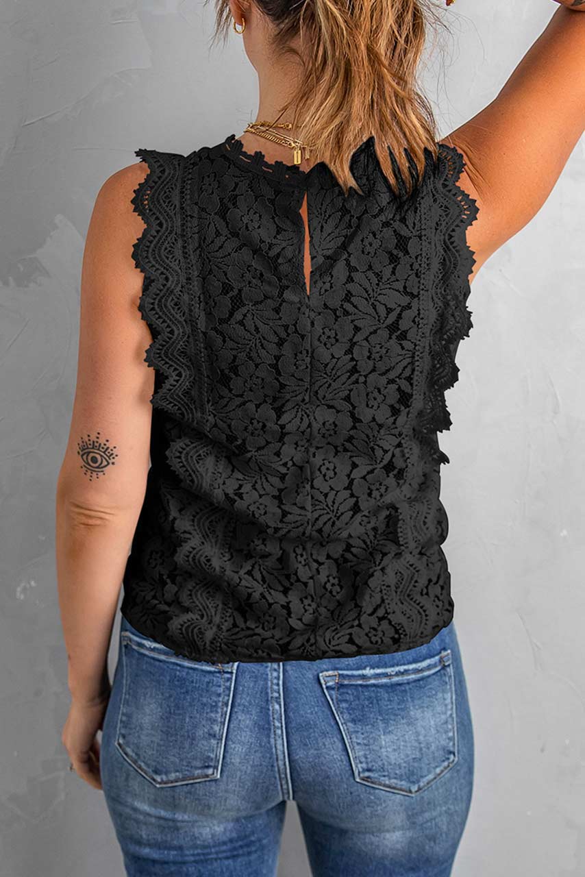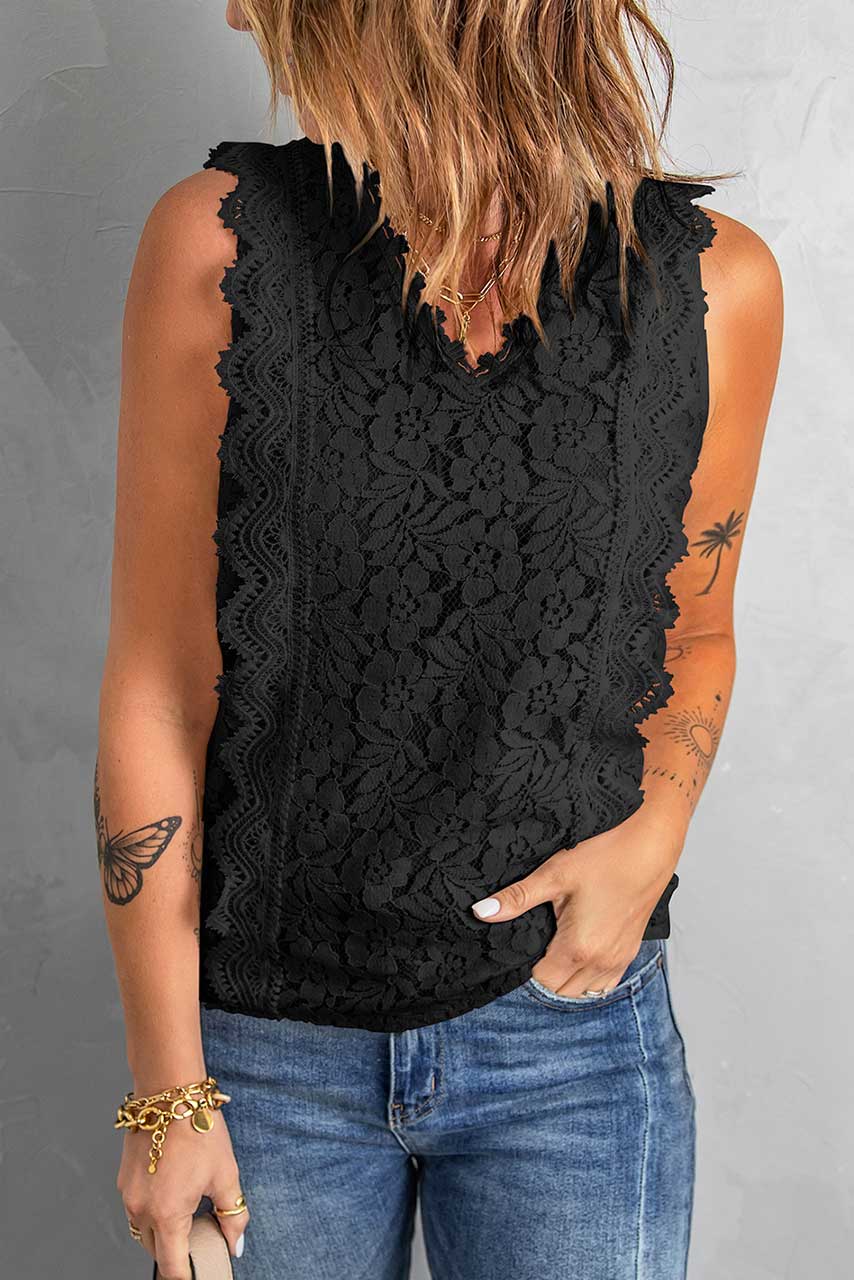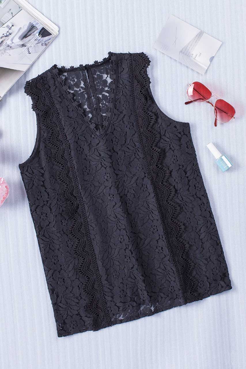 Cami αμάνικο top σε μαύρο με V ντεκολτέ και all over δαντέλα.