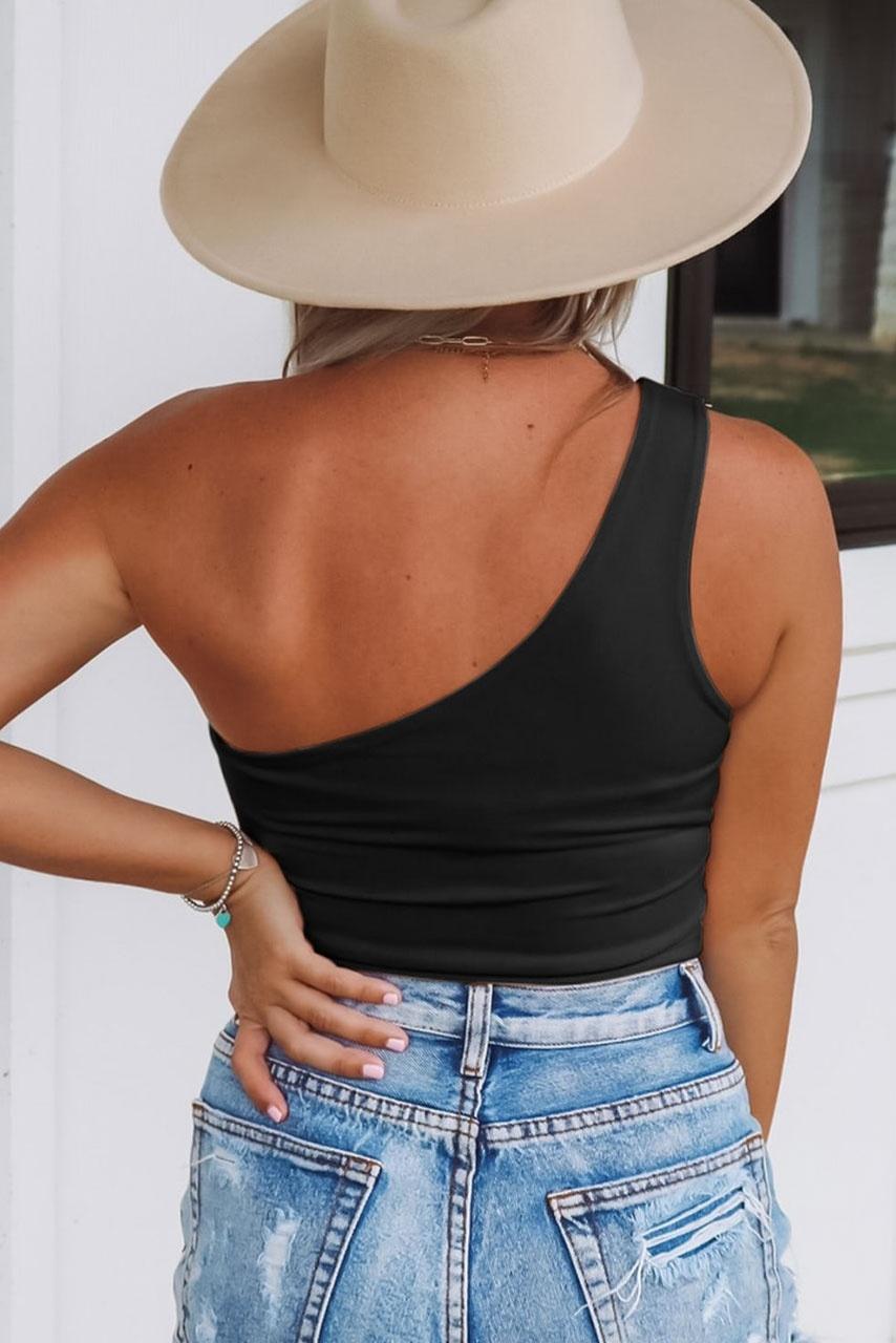 One shoulder μαύρο crop top