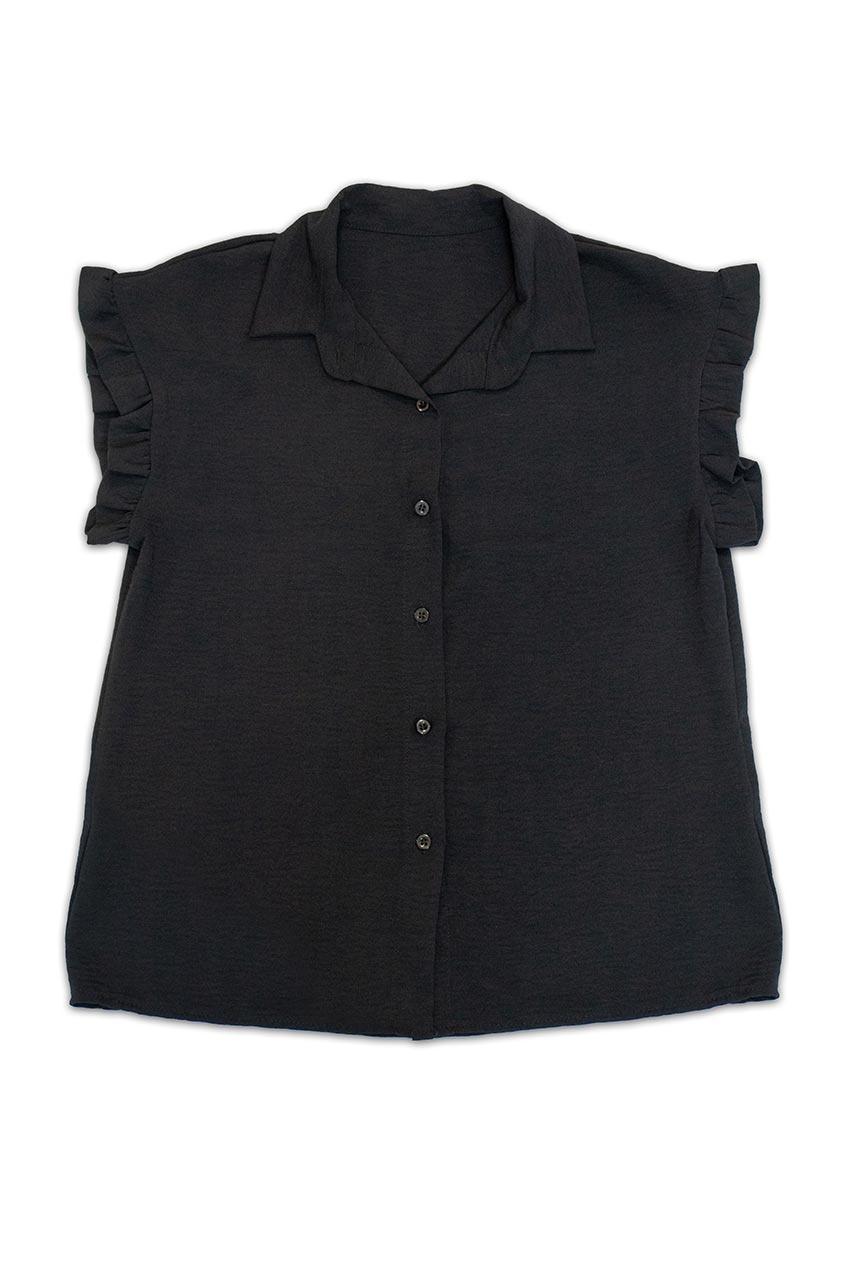 Μαύρο αέρινο τοπ με φραμπαλά και κουμπάκια μπροστά κατά μήκος.
