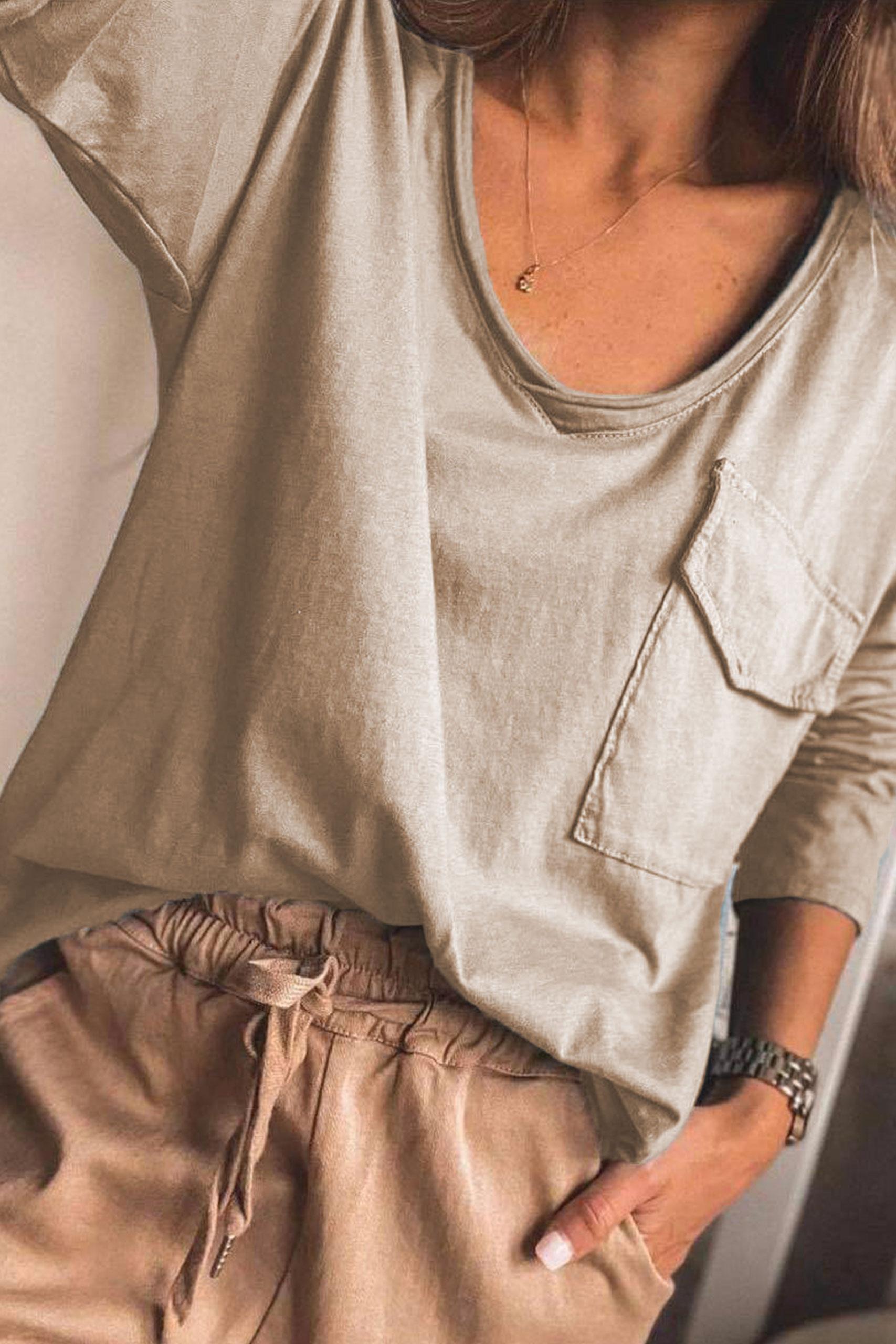 • Μακρυμάνικο τοπ | U neck λαιμόκοψη | Μικρή τσέπη