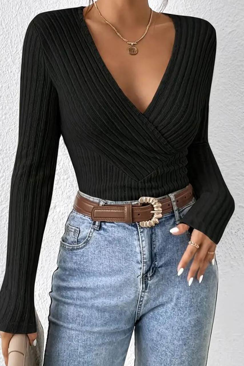 • Top V neck | Ελαστικό | Μακρυμάνικο
