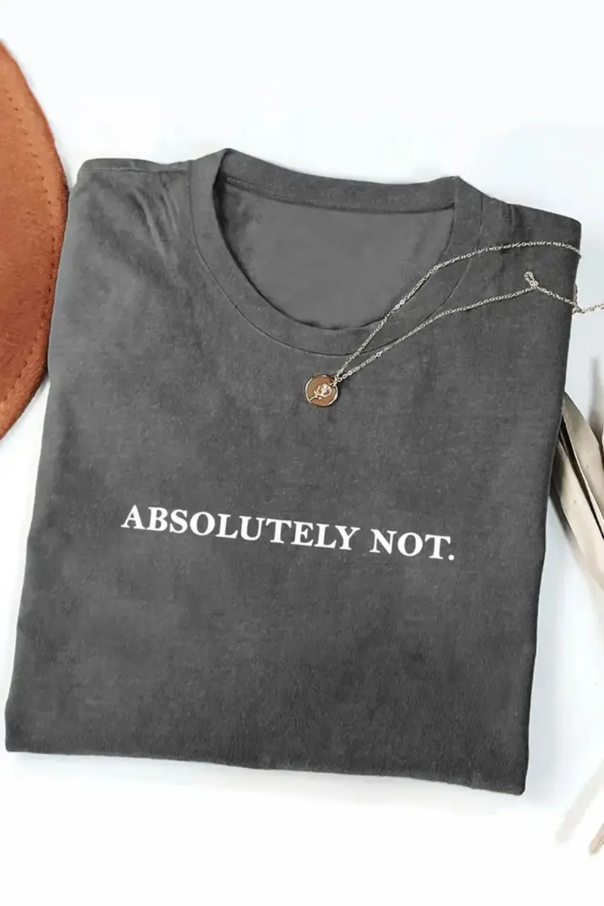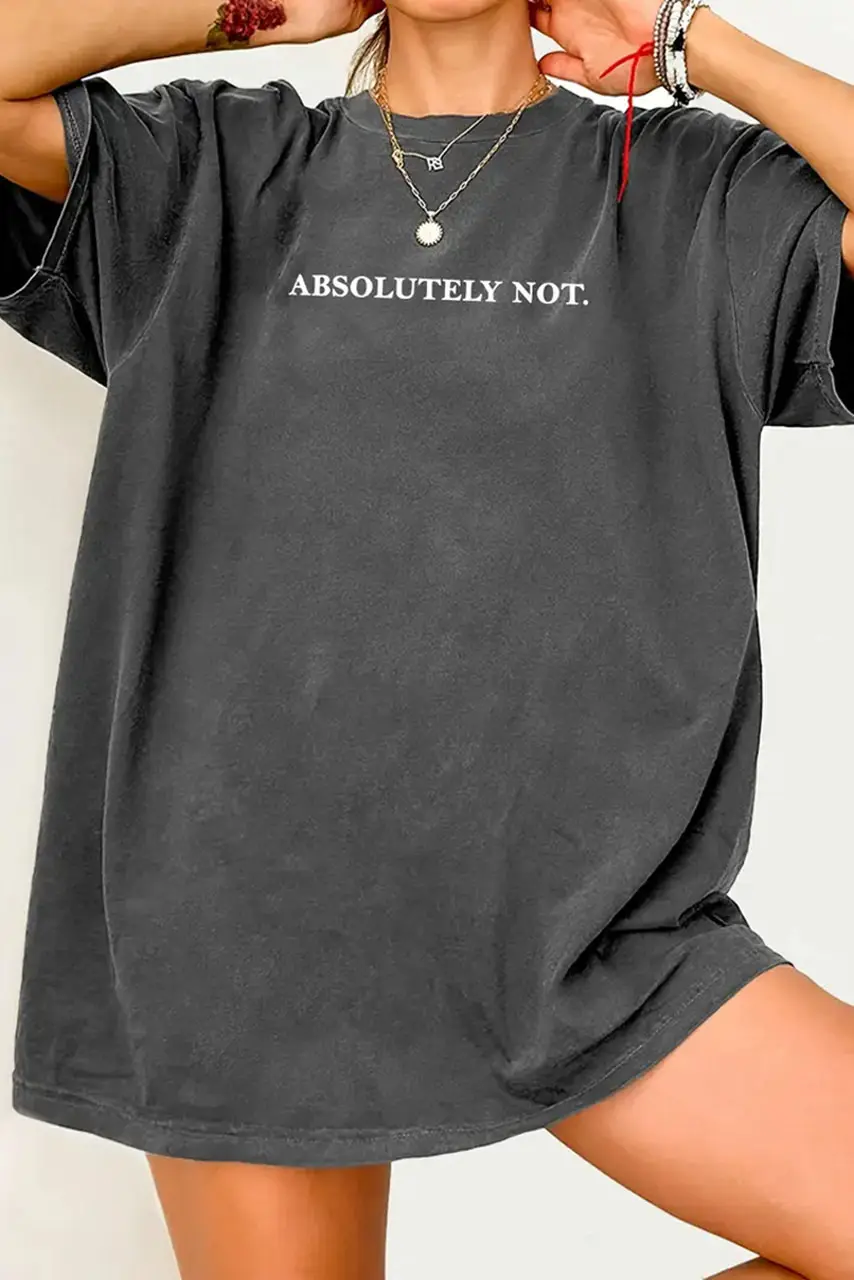 Το γκρι T-shirt με στάμπα “Absolutely Not.” δεν είναι απλώς ένα top—είναι δήλωση. Με το cool washed φινίρισμα και τη statement στάμπα, αυτό το oversized tee φέρνει την πιο ακομπλεξάριστη ενέργεια στις casual εμφανίσεις σου.
