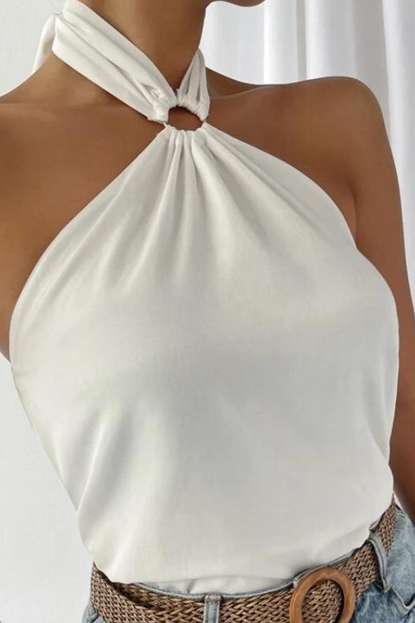 • Top με δέσιμο στο λαιμό | Πλαστικός κρίκος | Χαμηλή πλάτη