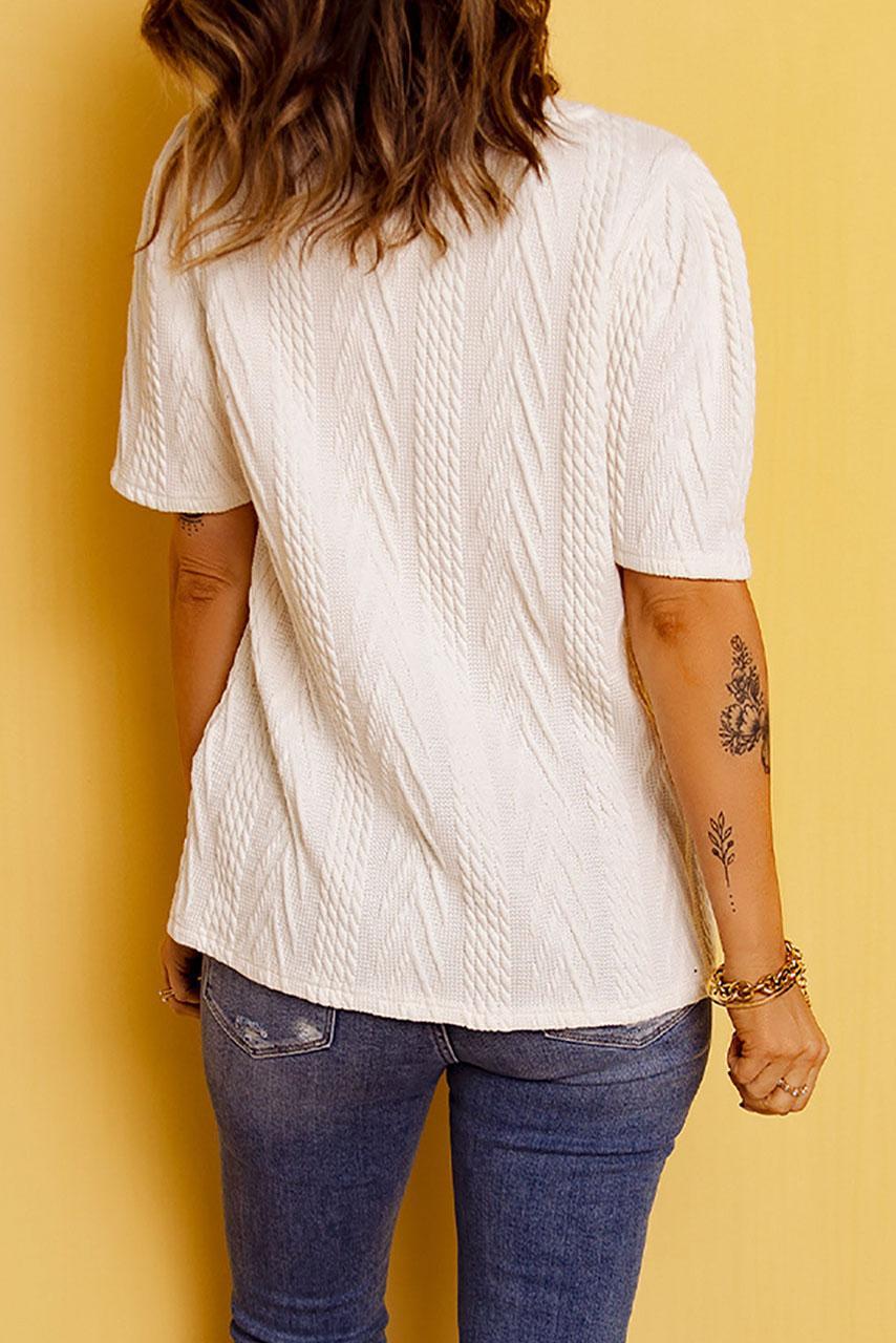 Hippie casual knitted κοντομάνικη μπλούζα σε λευκή απόχρωση με στρογγυλή λαιμόκοψη και λεπτομέρεια λεπτή braided πλέξη.