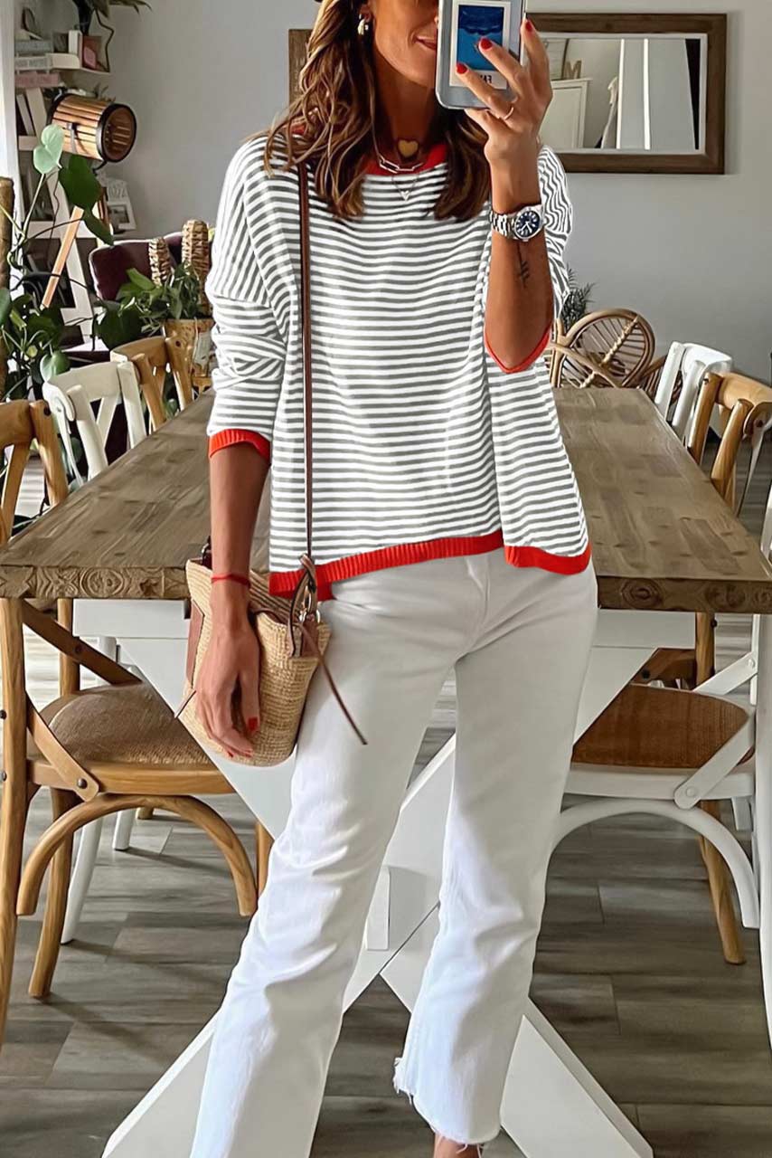 Πλεκτό ριγέ τοπ τρίχρωμο γκρι