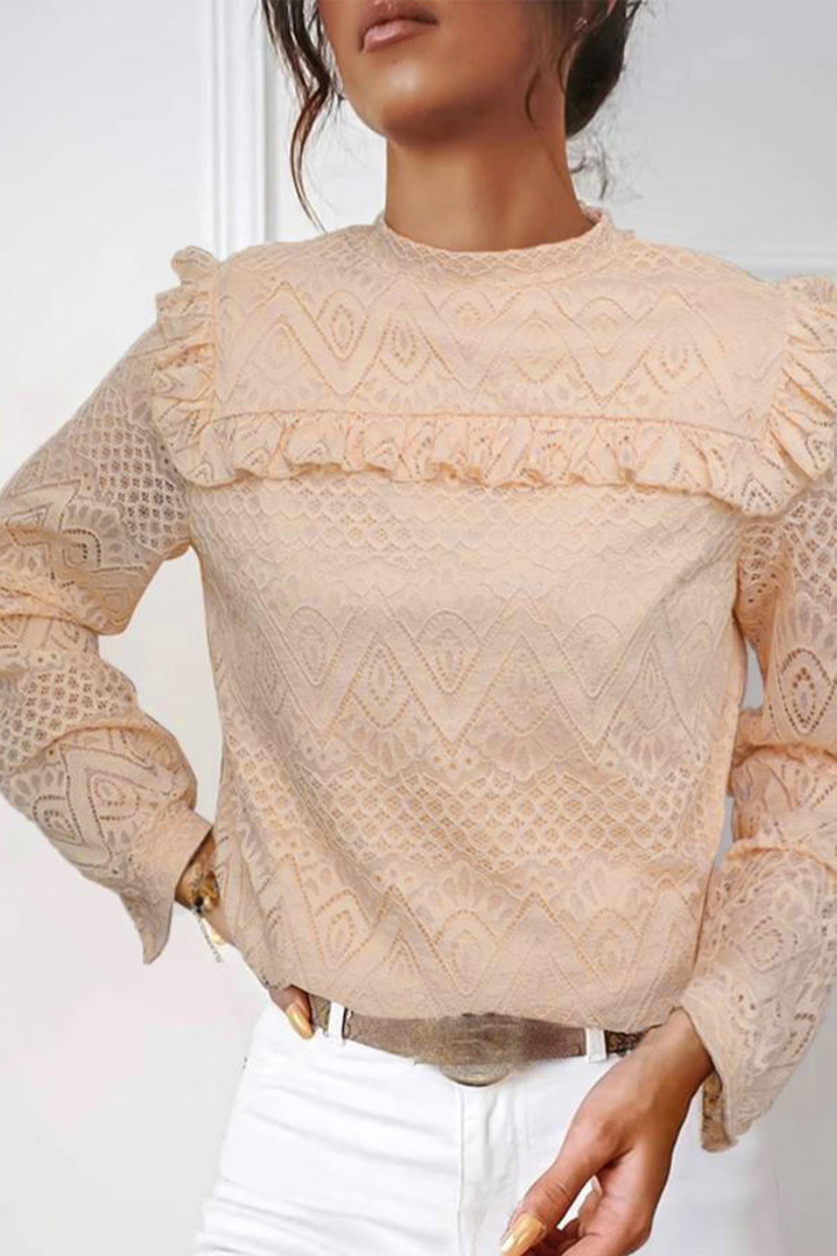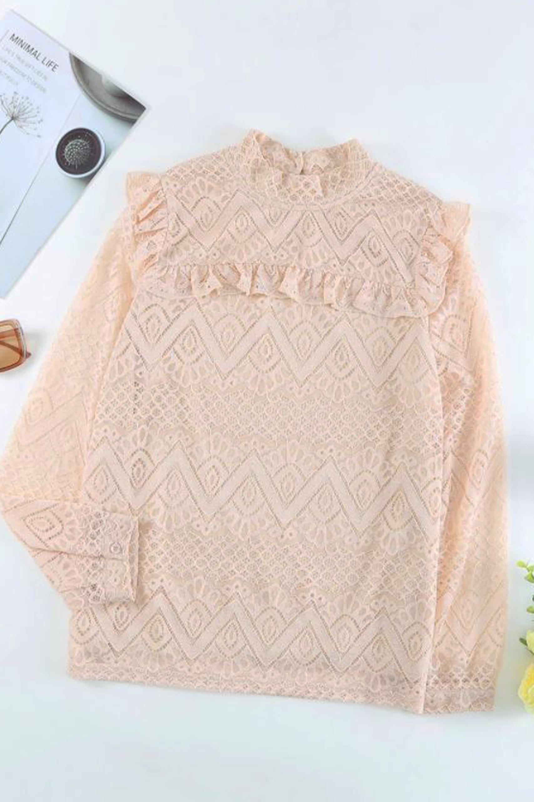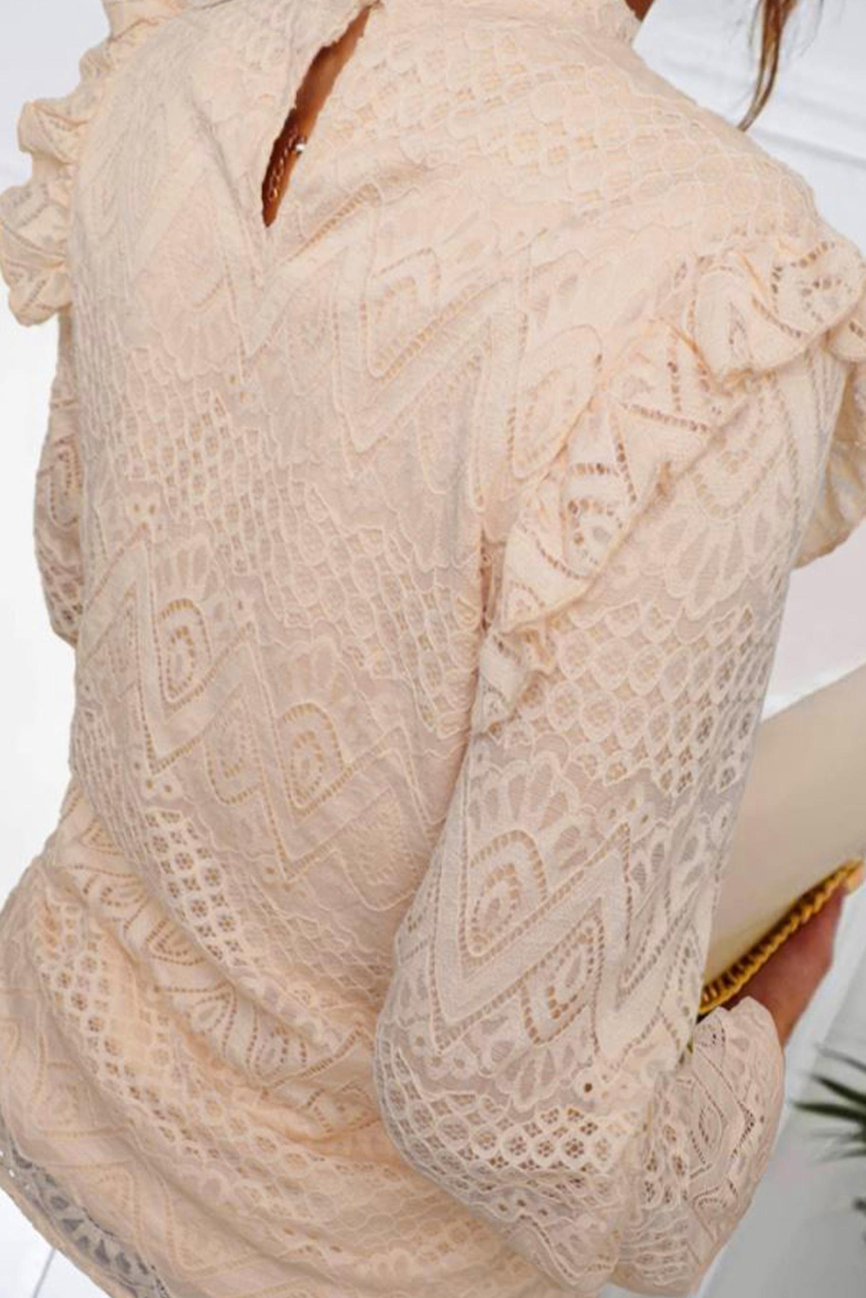 Lace overlay μπλούζα ρομαντικού τύπου με δαντέλα all over και βολάν.