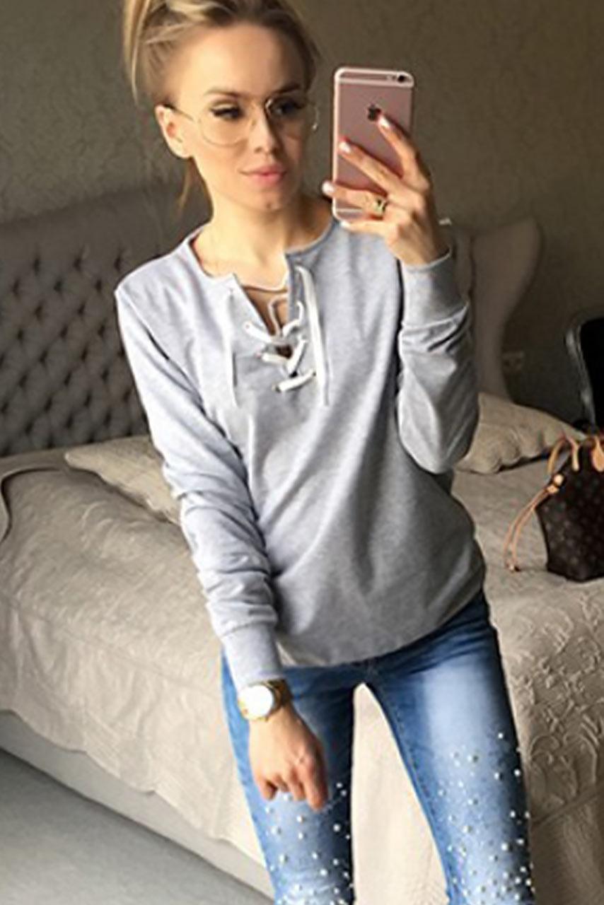 To basic go-to καθημερινό φούτερ με lace up κορδόνι στο V σε γκρι χρώμα.