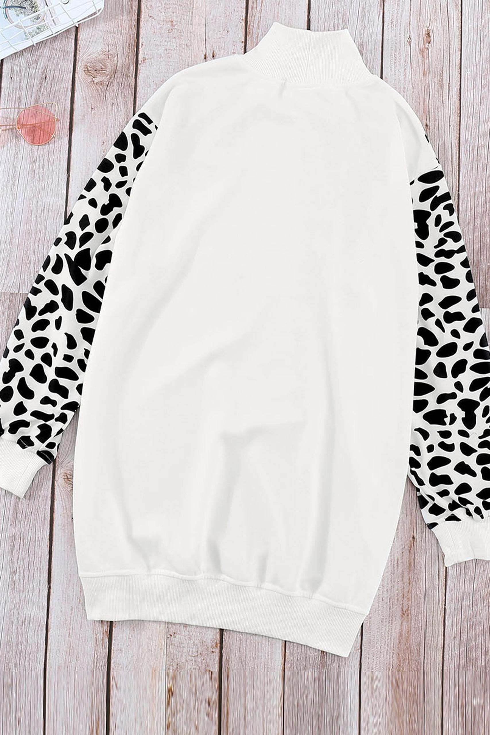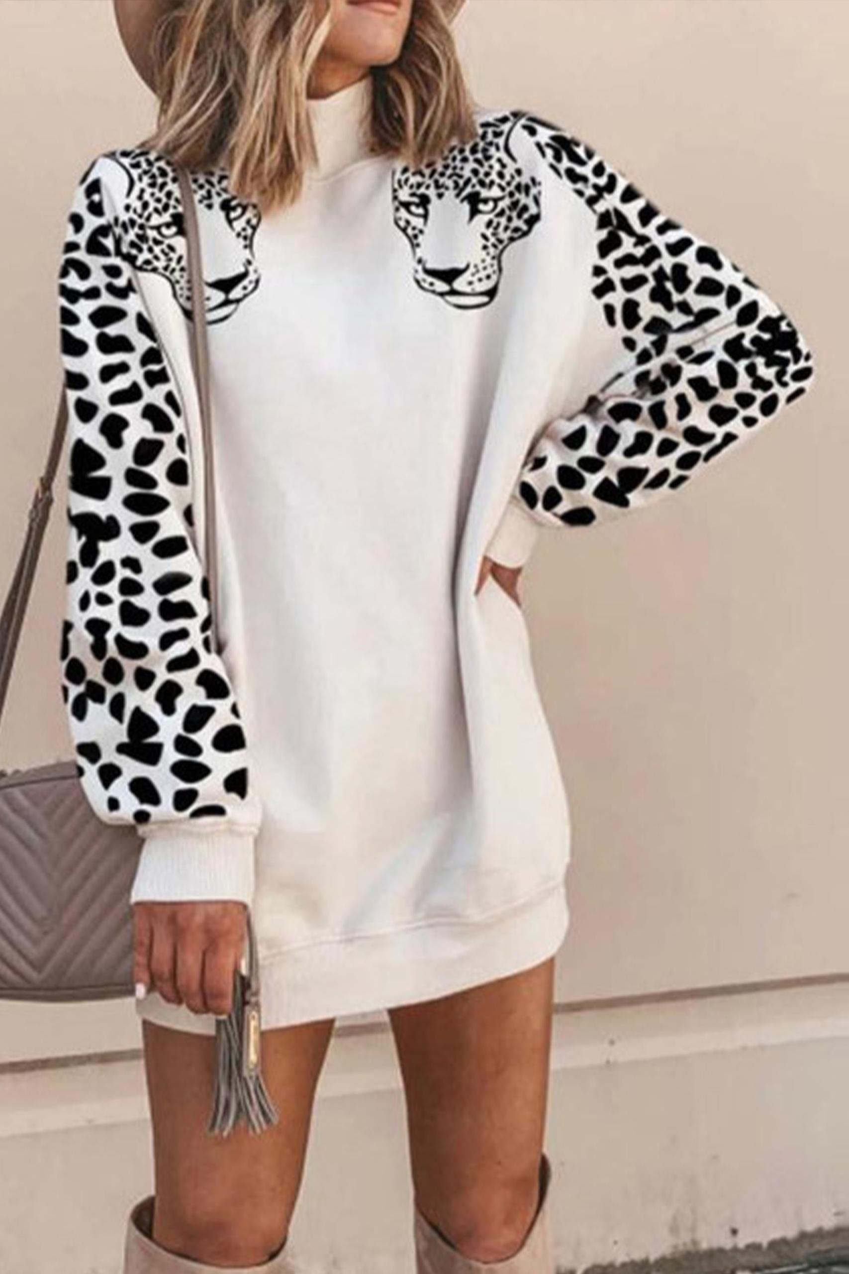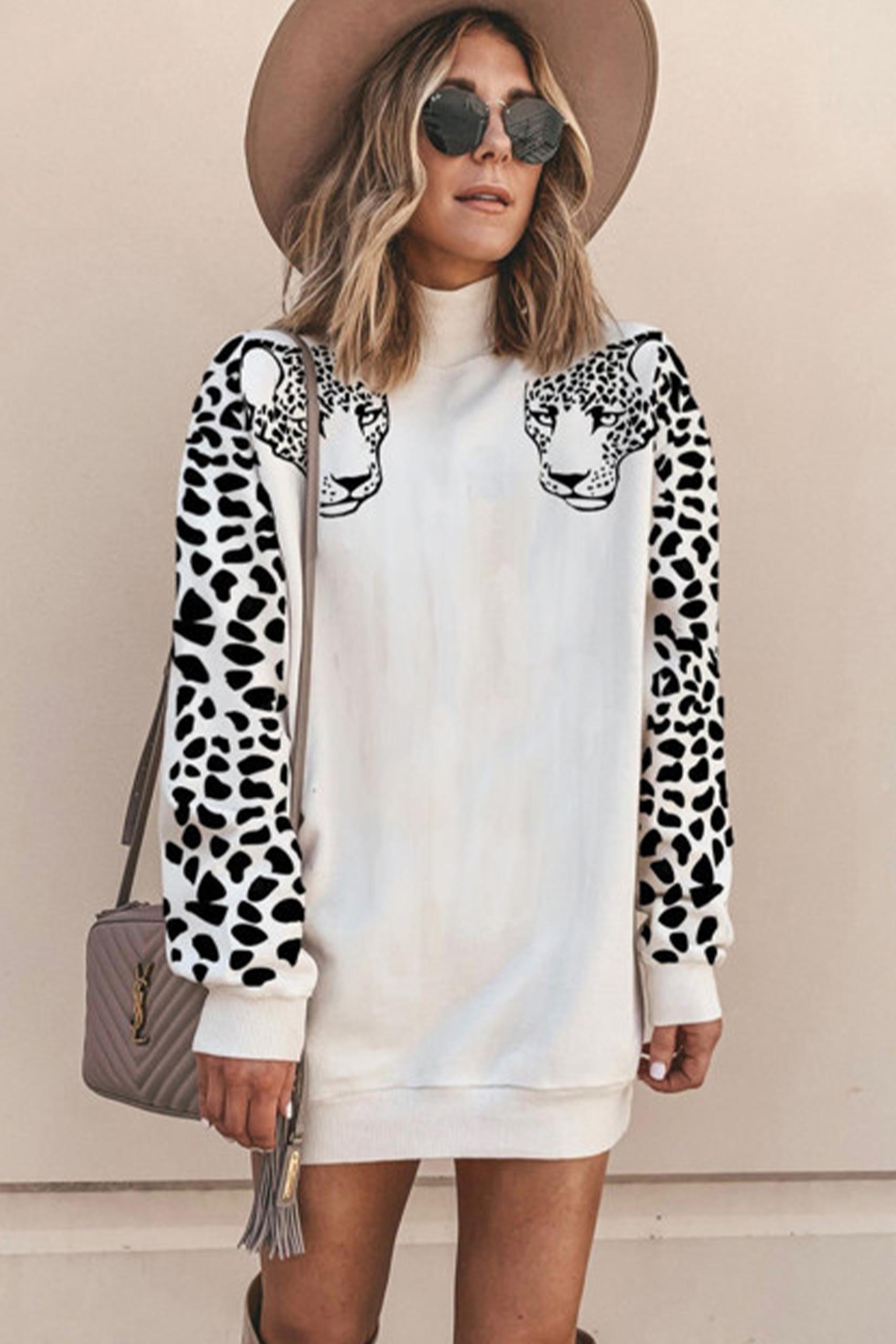 Total white φούτερ μπλουζοφόρεμα με leopard animal print pattern στα μανίκια.