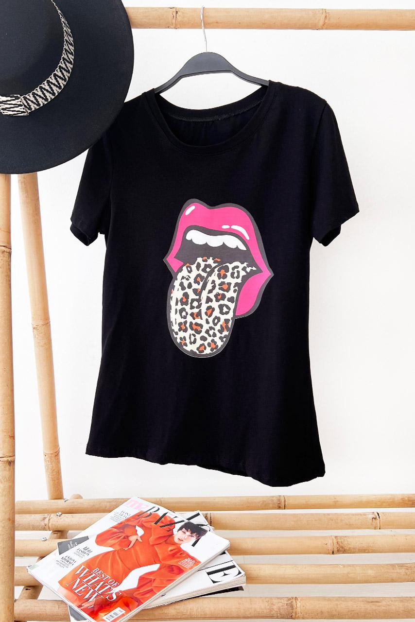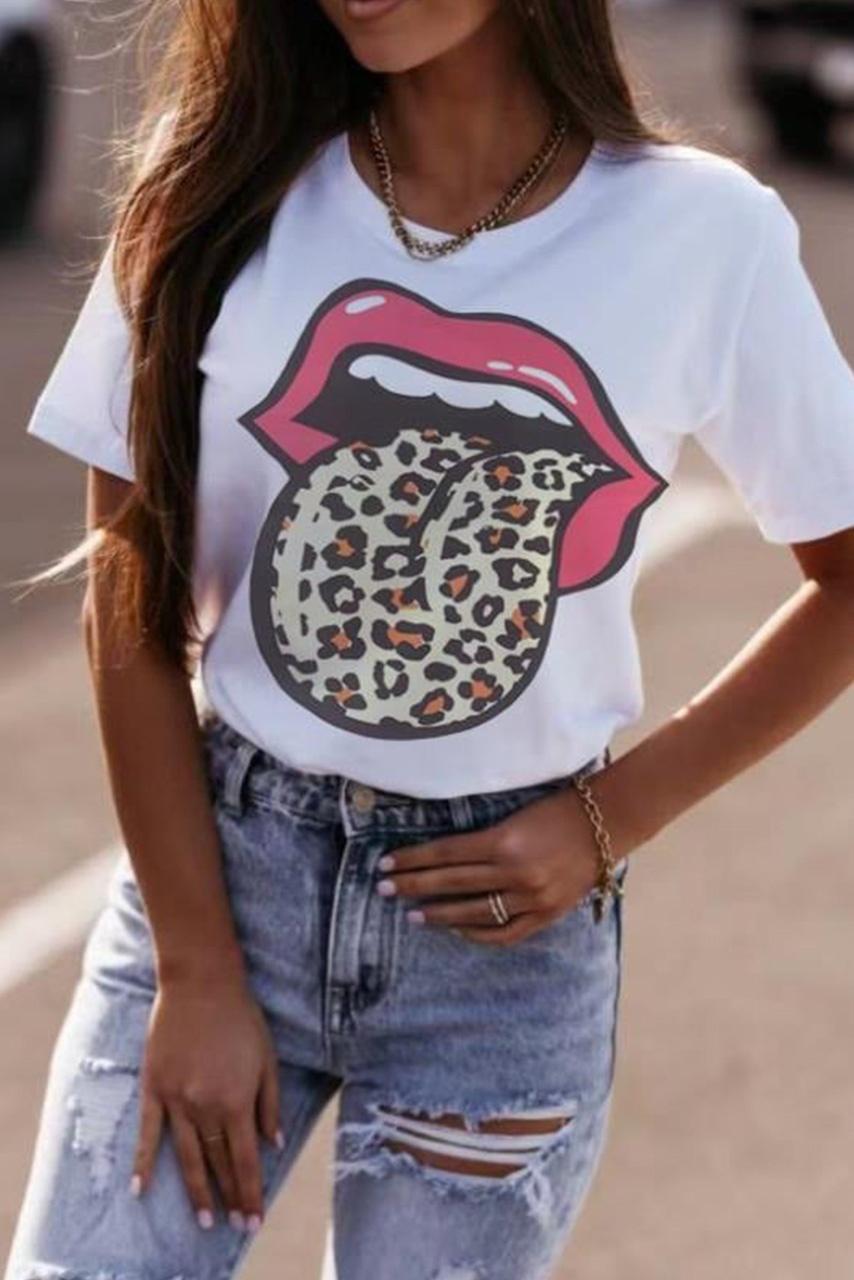 Grunge girly κοντομάνικο τοπ με στρογγυλή λαιμόκοψη σε άσπρο και μαύρο χρώμα με pink leopard στάμπα.