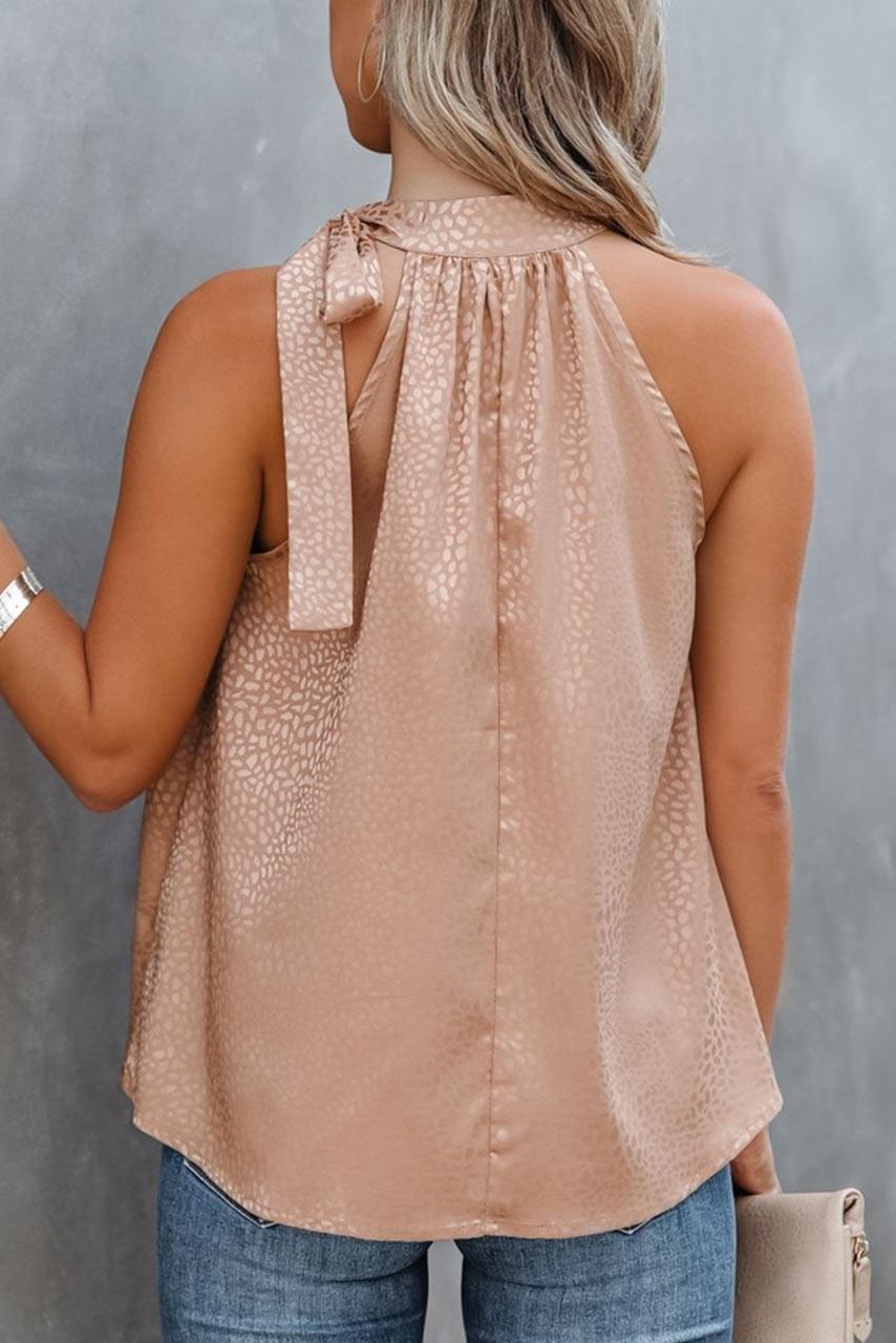 Ανάλαφρο αμάνικο powder-pink καλοκαιρινό τοπάκι με κορδόνι στο λαιμό, Α γραμμή. Look που μπορείτε να φορέσετε άνετα στο γραφείο αλλά και στις Κυριακάτικες βόλτες.