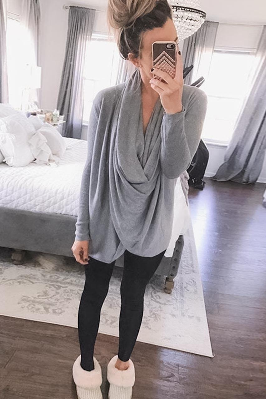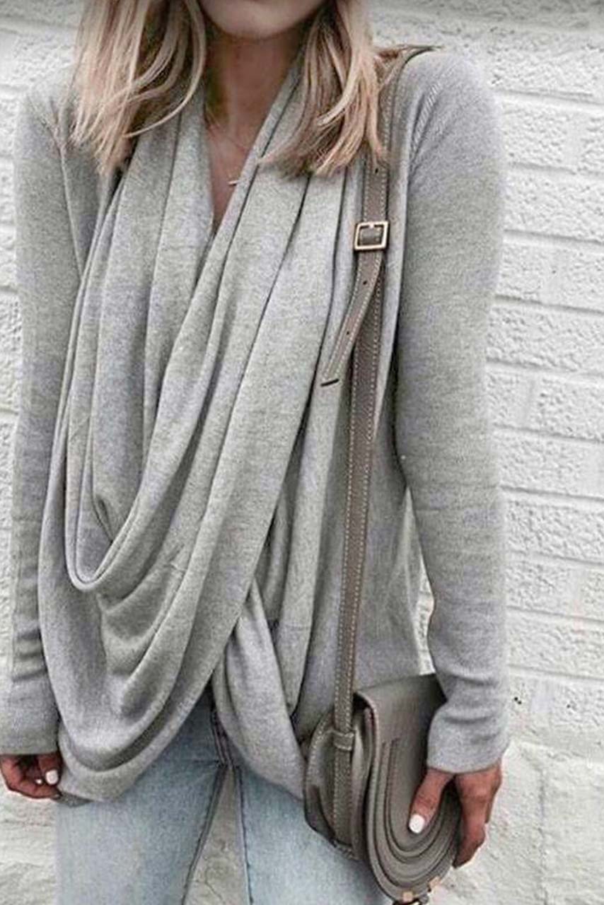 Κρουαζέ μακρυμάνικο top σε ανοιχτό γκρι απόχρωση για διαφορετικούς συνδυασμούς όλη μέρα.