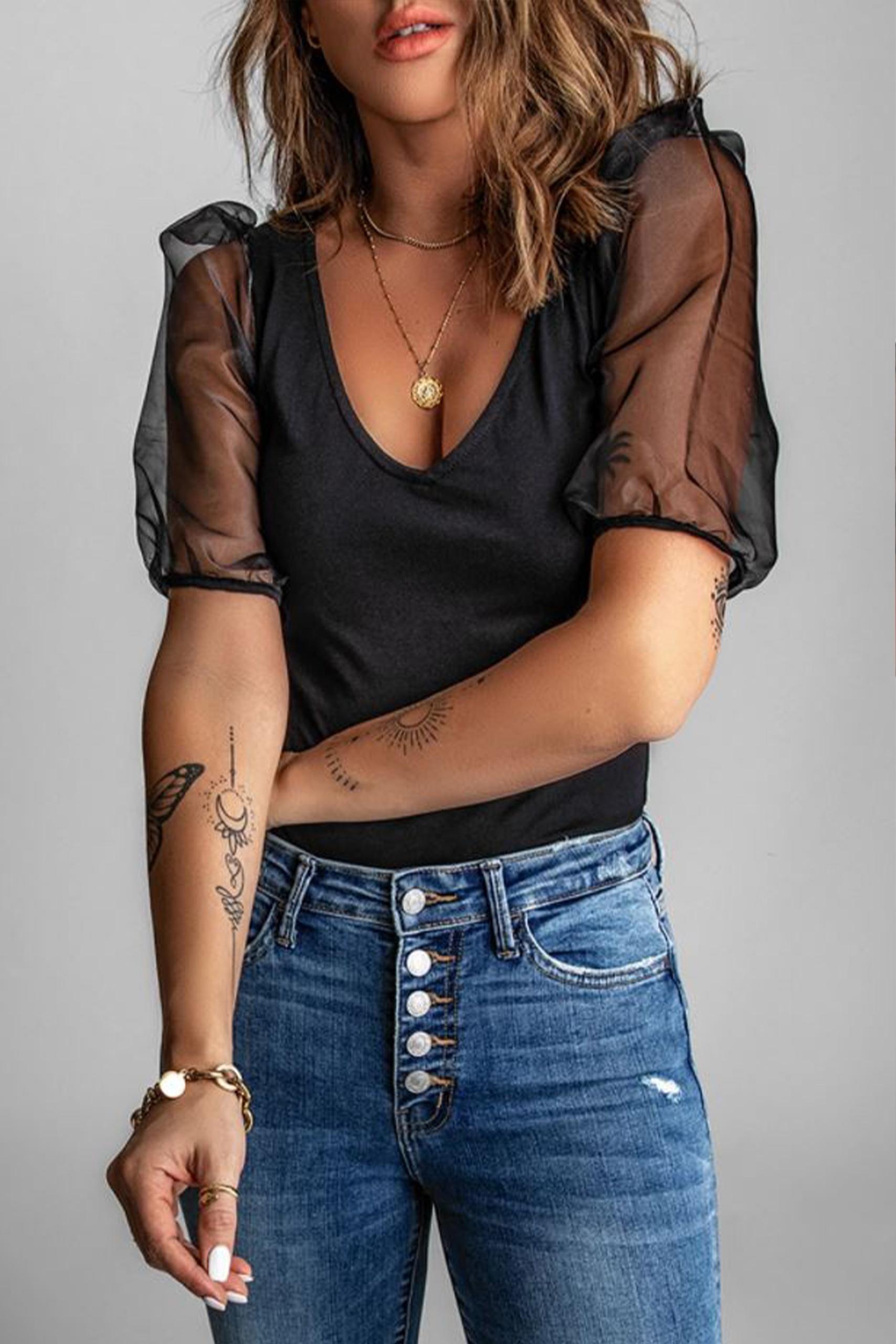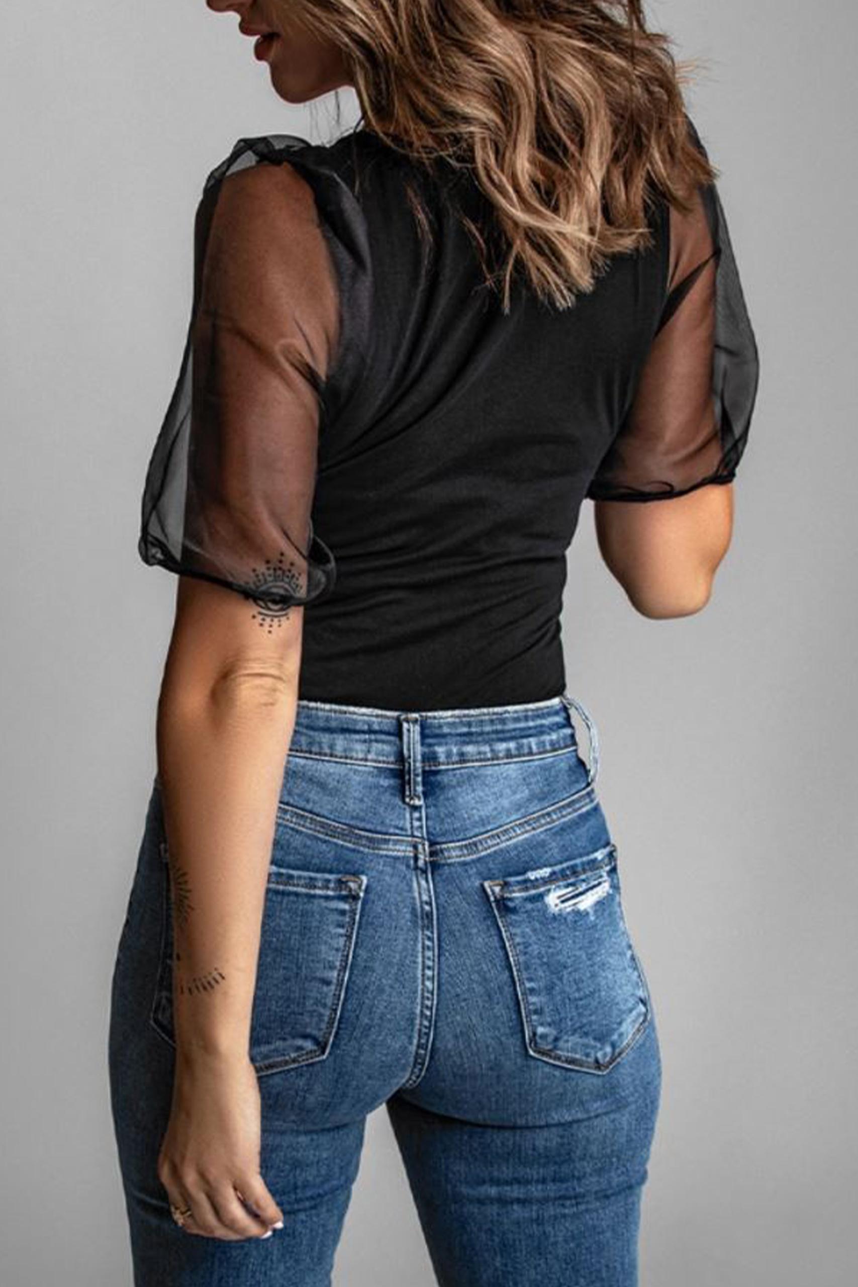 Mesh transparent tank τοπ με διάφανα balloon μανίκια και λαιμόκοψη.